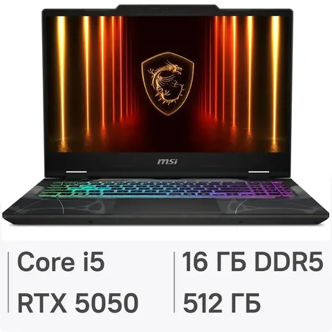 MSI Cyborg 15 — мощь и стиль в одном корпусе! Для геймеров и профессионалов. Ультрасовременный процессор Intel Core i5 (до 4,8 ГГц), видеокарта NVIDIA GeForce RTX 5050, оперативная память DDR5 16 ГБ и быстрый SSD 512 ГБ. Идеален для игр и сложных программ. Матовая панель экрана защищает от бликов, а высокая частота обновления (144 Гц) гарантирует плавность картинки. Черная полупрозрачная крышка подчеркивает индивидуальность ноутбука. Операционной системой выберите ту, которая нравится вам!