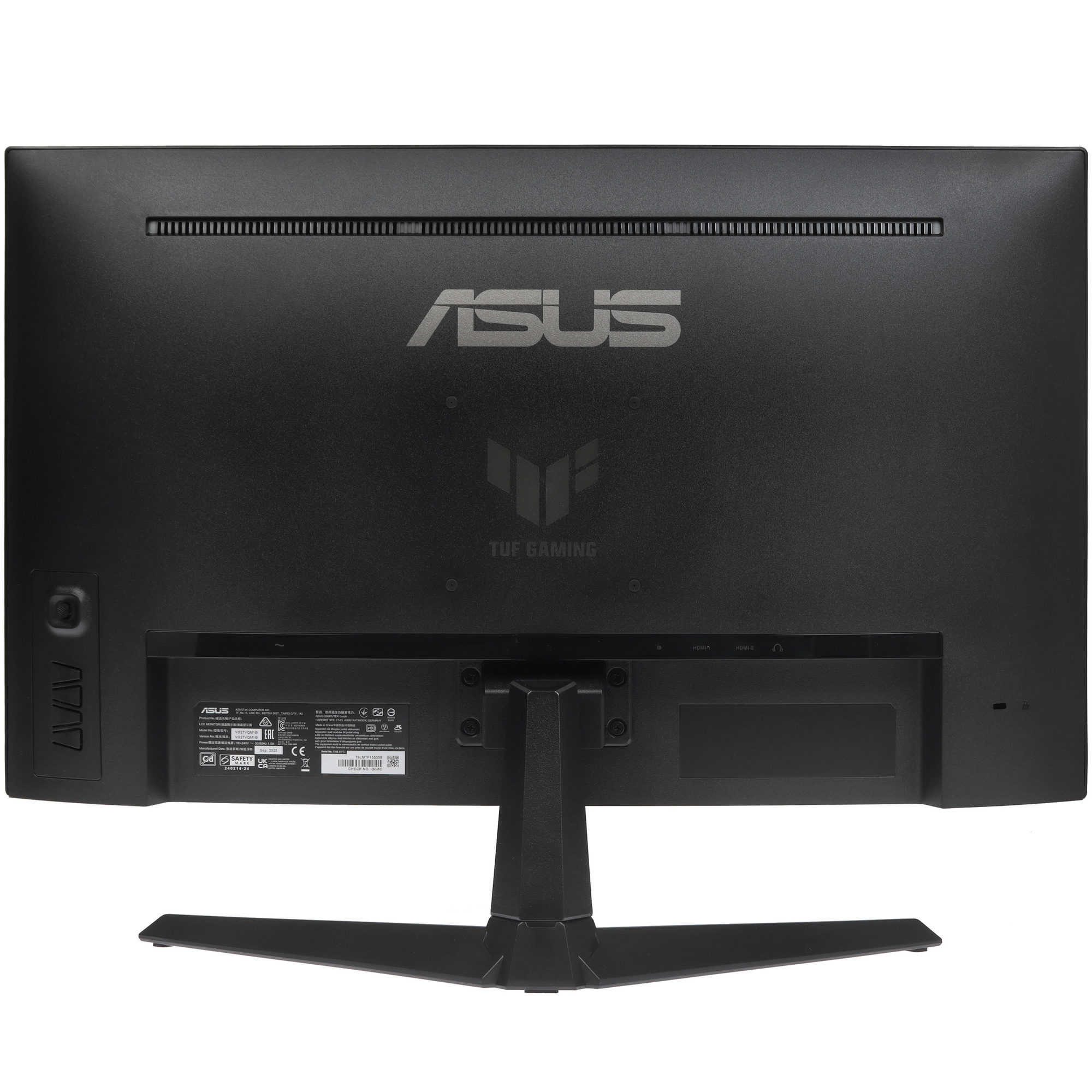 Asus TUF Gaming VG27VQM1B — это игровой монитор с изогнутым экраном 27 дюймов (1500R), оснащённый VA-матрицей и частотой обновления 280 Гц. Время отклика составляет 1 мс (MPRT), разрешение — 1920×1080 пикселей. Монитор имеет антибликовое покрытие и технологии защиты зрения Flicker-Free и Low Blue Light. Поддерживает AMD FreeSync Premium, технологию ELMB и функции GamePlus/GameVisual для улучшения игрового процесса. Оснащён двумя портами HDMI 2.0, портом DisplayPort 1.2, выходом для наушников и встроенными динамиками мощностью 2 Вт каждый. Регулируется по наклону от −5° до +23°, имеет крепление VESA 100×100 и яркость 250 кд/м².