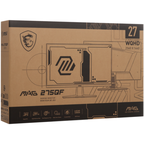 Монитор MSI MAG 275QF в чёрном исполнении оснащён экраном с диагональю 27 дюймов и разрешением 2560x1440 пикселей. Он поддерживает технологию адаптивной синхронизации кадров Adaptive-Sync, что обеспечивает плавное воспроизведение динамичных сцен в видео и играх без разрывов. Это делает его идеальным выбором для геймеров и профессионалов, работающих с графикой.