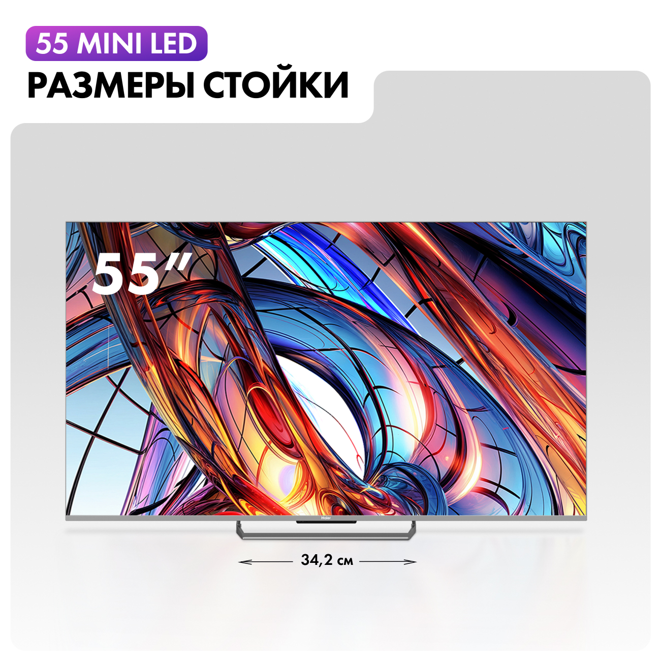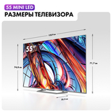 Haier 55 Mini LED — это 55-дюймовый LED-телевизор в сером корпусе с поддержкой 4K UltraHD. Устройство функционирует на базе операционной системы Android TV и оснащено встроенным модулем Wi-Fi для подключения к интернету. Телевизор можно установить на стену с помощью крепления VESA 300x300.