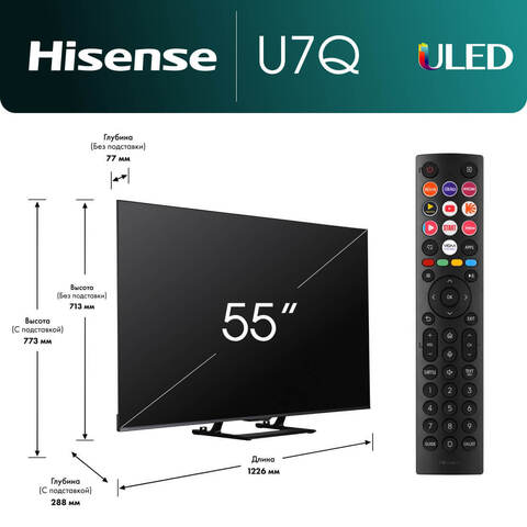 55" Телевизор Hisense 55U7Q, Mini LED, QLED, 4K UltraHD, Wi-Fi, 120 Гц - купить в Донецке в ДНР