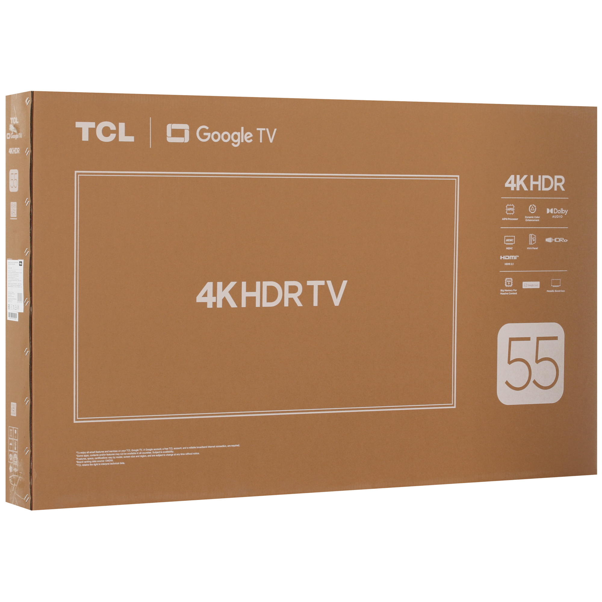Телевизор TCL 55P6K с черным корпусом функционирует на базе интуитивно понятной операционной системы Google TV, поддерживающей голосовое управление. Он обеспечивает яркое 4K-изображение на 55-дюймовой HVA-панели с высокой детализацией. Усиленная контрастность и углы обзора 178° гарантируют четкость картинки даже при просмотре с боковой стороны. Технология HDR10 передает все нюансы изображения, от глубоких теней до ярких бликов, а динамическое усиление цвета делает оттенки насыщенными. Процессор AiPQ с алгоритмами Ai-Цвет и Ai-Контраст оптимизирует изображение в реальном времени. Технология MEMC улучшает плавность движения и уменьшает размытие в динамичных сценах. Игровой режим минимизирует задержки, предотвращает разрывы кадров и повышает шансы на победу. Переменная частота обновления VRR 120 Гц синхронизирует изображение с FPS в играх. Встроенные тюнеры DVB-C, DVB-S, DVB-S2, DVB-T и DVB-T2 позволяют принимать цифровое кабельное, спутниковое и эфирное телевидение.