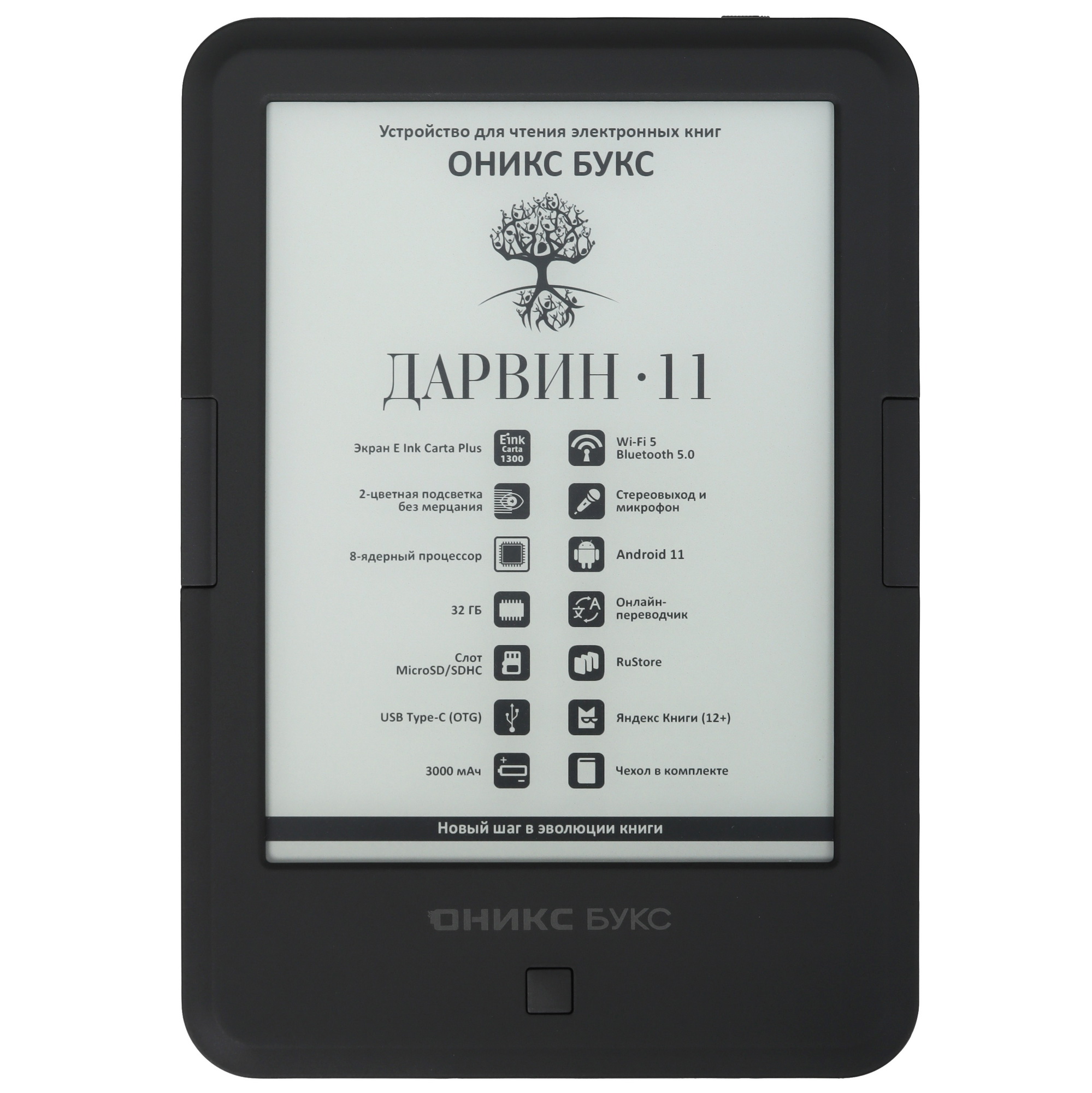 6" Электронная книга ОНИКС БУКС Дарвин 11 черный + чехол [1072x1448, E-Ink Carta 1300, сенсор, подсветка, Wi-Fi, Bluetooth, 3000 мА*ч] - купить в Донецке ДНР