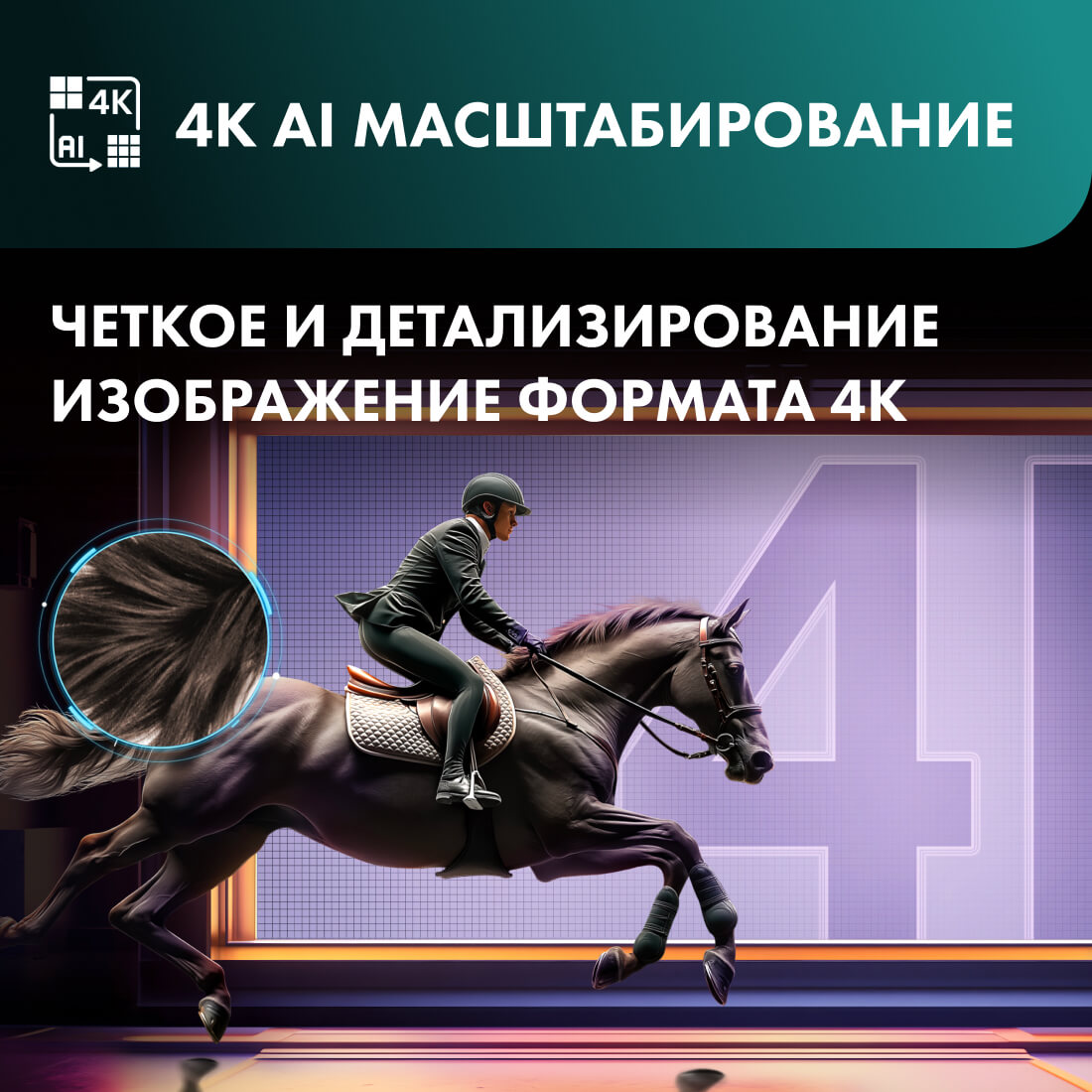 90% DCI-PC3, AI 4K Upscaler, AI Picture, AI Scenario, FreeSync Premium, Game Bar, HSR 240 Гц, HbbTV V2.0.4, время отклика 8 мс, гостиничный режим, режим FILMMAKER, родительский контроль, таймер сна, эквалайзер