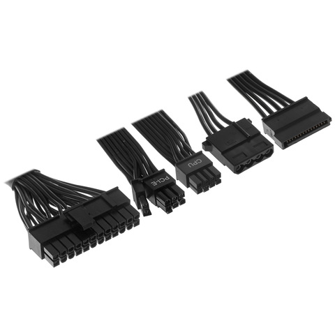 Основные разъемы питания — 20 + 4 pin — дополнены другими, что позволяет подключать видеокарту, материнскую плату, процессор и другие компоненты.