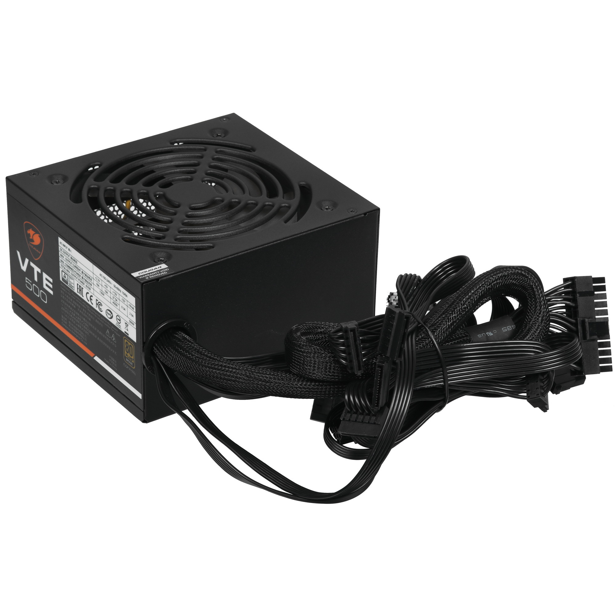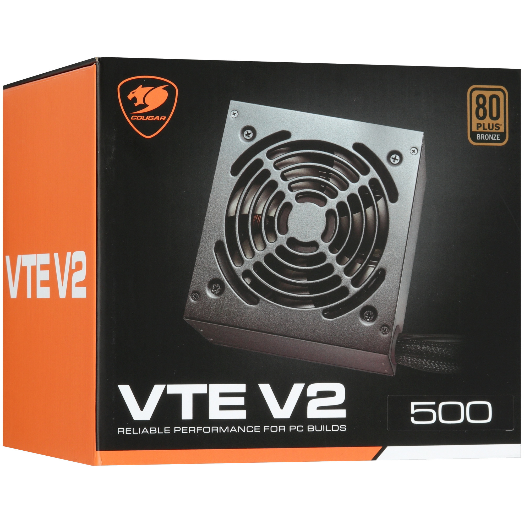 Cougar VTE 500W V2 соответствует стандарту ATX 2.4 и имеет сертификат энергоэффективности 80+ Bronze. Встроенный вентилятор размером 120x120 мм поддерживает оптимальную температуру под нагрузкой. Блок питания работает с входным напряжением от 100 до 240 В и частотой тока 50/60 Гц.