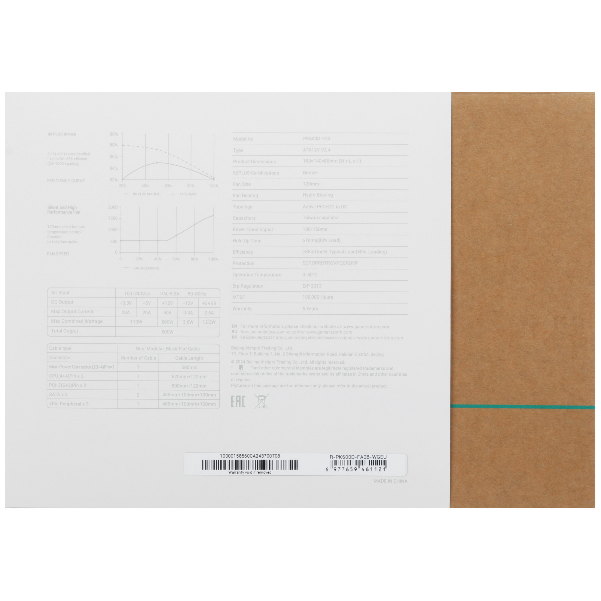 Блок питания DEEPCOOL GamerStorm PK600D [R-PK600D-FA0B-WGEU] черного цвета отличается высокой энергоэффективностью, соответствуя стандарту 80+ Bronze. Он обеспечивает мощность в 600 Вт, гарантируя стабильную работу всех компонентов вашего игрового компьютера. Модуль формата ATX оснащен черными кабелями для подключения материнской платы, процессора, накопителей и видеокарты.