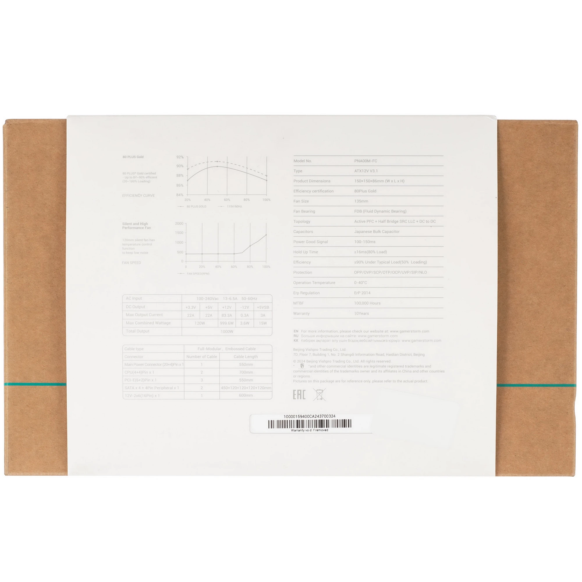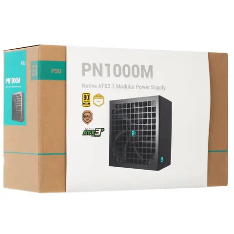 DEEPCOOL GamerStorm PN1000M – это мощный блок питания с сертификатом 80 PLUS Gold. Он выдает 1000 Вт и достигает КПД 88% при полной нагрузке. Такой блок питания идеально подходит для игровых компьютеров с высокопроизводительными компонентами. Его модульная конструкция позволяет легко отсоединять лишние кабели, что упрощает организацию внутри корпуса и улучшает циркуляцию воздуха.