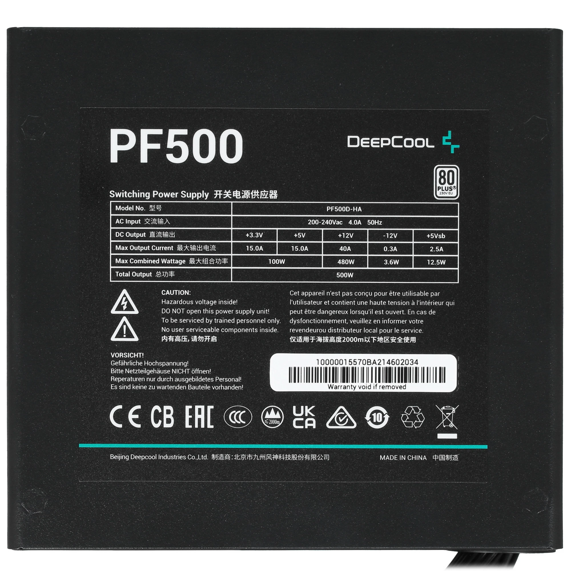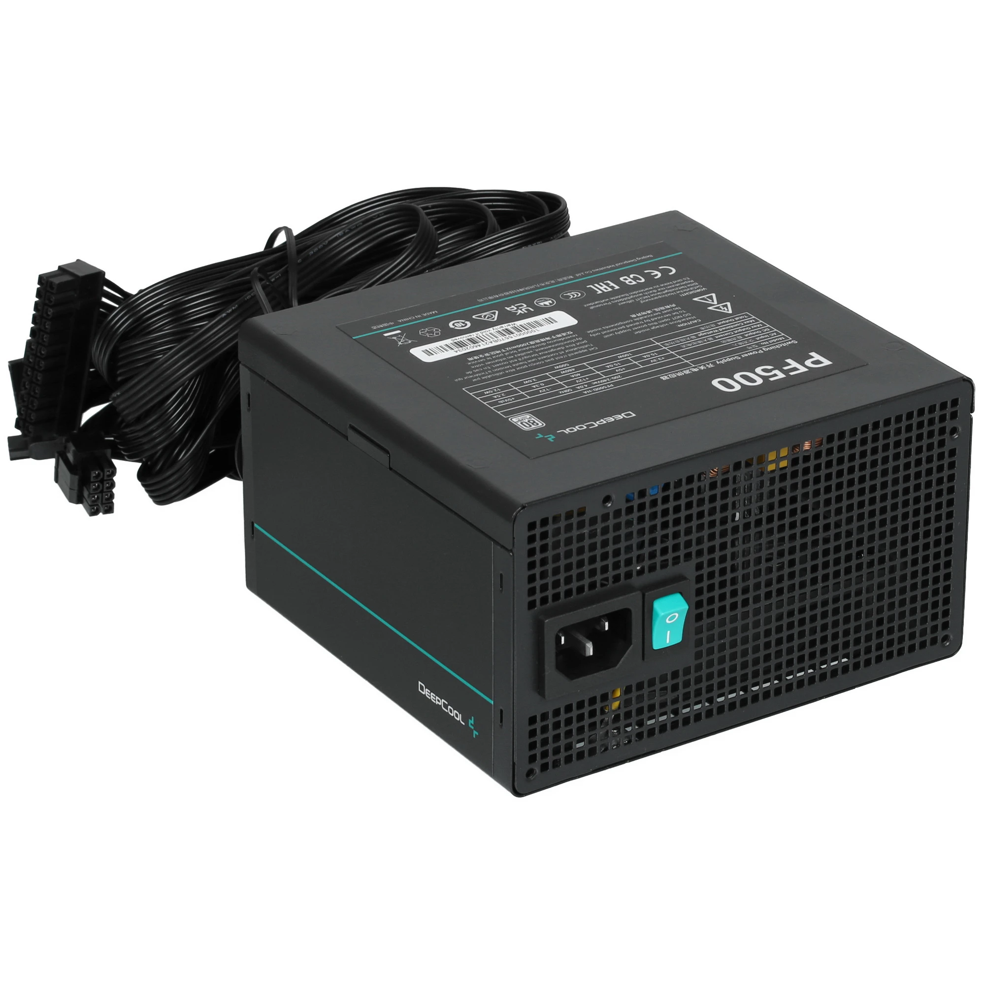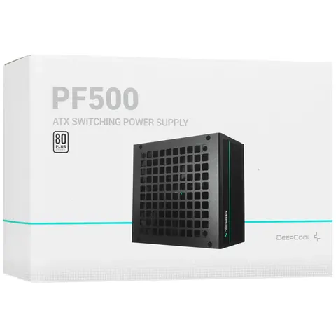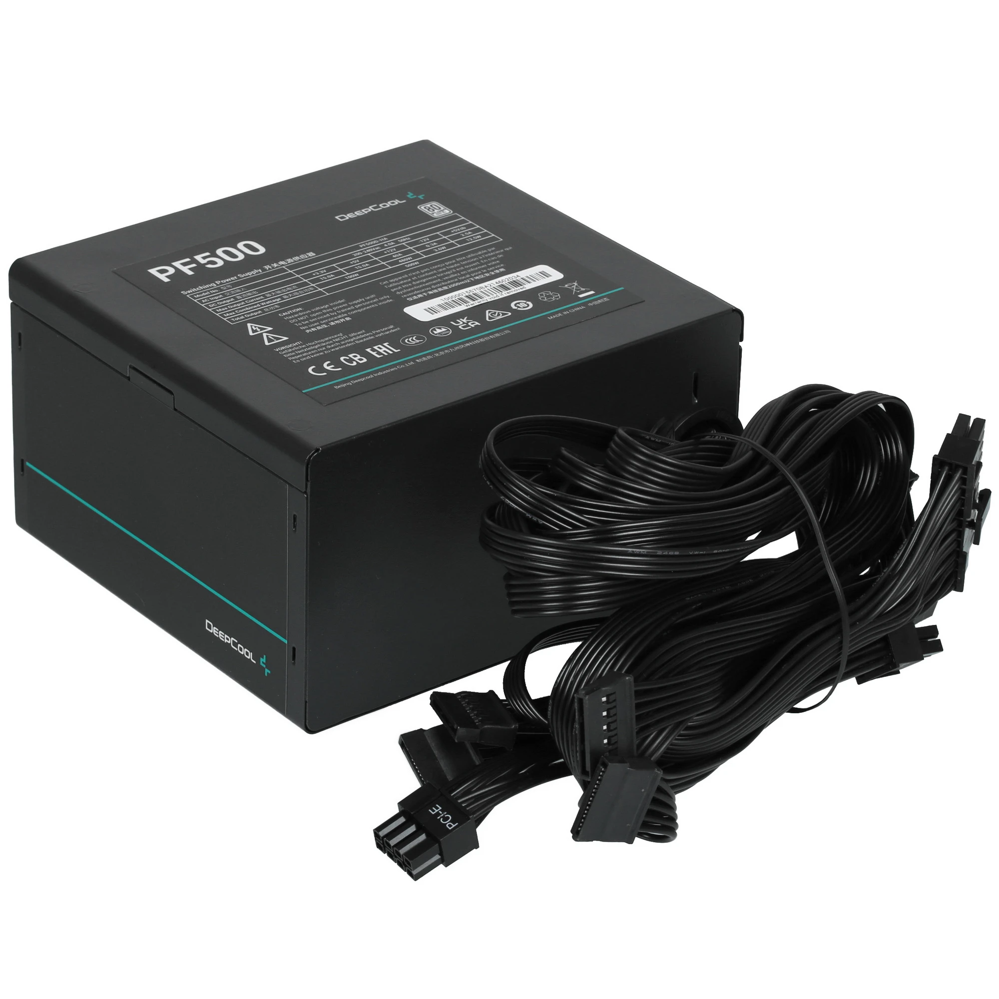 Блок питания DEEPCOOL PF500 (R-PF500D-HA0B-EU) мощностью 500 Вт подходит для домашних станций и игровых ПК начального уровня. Он оснащен черными кабелями с основным разъемом питания, а также разъёмами для процессора, до шести SATA-накопителей и двух видеокарт. Устройство поддерживает напряжение от 200 до 240 В и сертифицировано по стандарту 80 PLUS Standard.