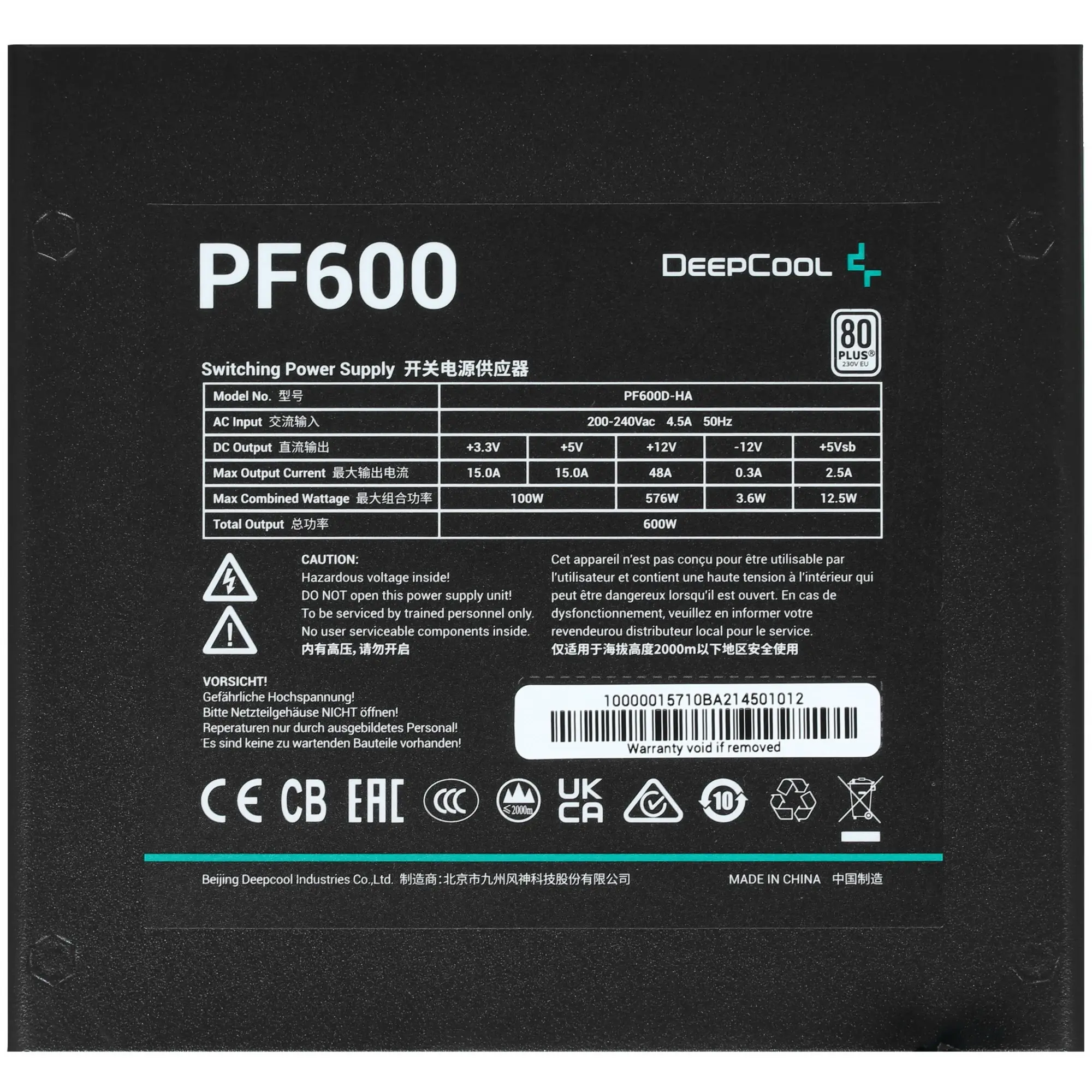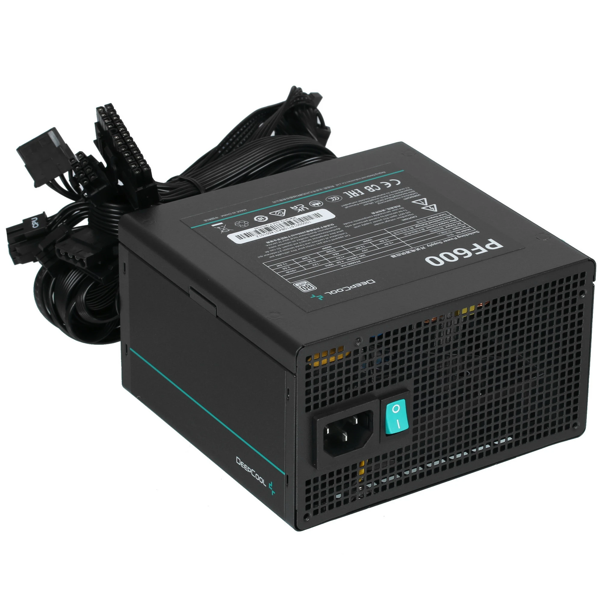 Блок питания DEEPCOOL PF600 [R-PF600D-HA0B-EU] мощностью 600 Вт способен поддерживать все компоненты вашего компьютера. Этот блок питания подходит для домашних ПК и игровых систем начального уровня. Он оснащен несъемными кабелями в черном цвете. Основной разъем питания имеет 20 + 4 pin, есть разъем 4+4 pin CPU для процессора, 6 разъемов SATA для накопителей и 4 интерфейса 6+2 pin PCI-E для видеокарт.
