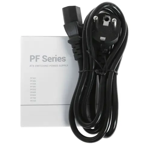 Блок питания DEEPCOOL PF750 [R-PF750D-HA0B-EU] мощностью 750 Вт обеспечивает энергией все компоненты игрового компьютера. Устройство оснащено черными кабелями с основными разъемами питания, интерфейсом 4+4 pin для процессора, слотами для шести SATA-дисков и четырьмя разъемами для видеокарт. Сетевой кабель идет в комплекте, блок питания поддерживает напряжение 200-240 В.