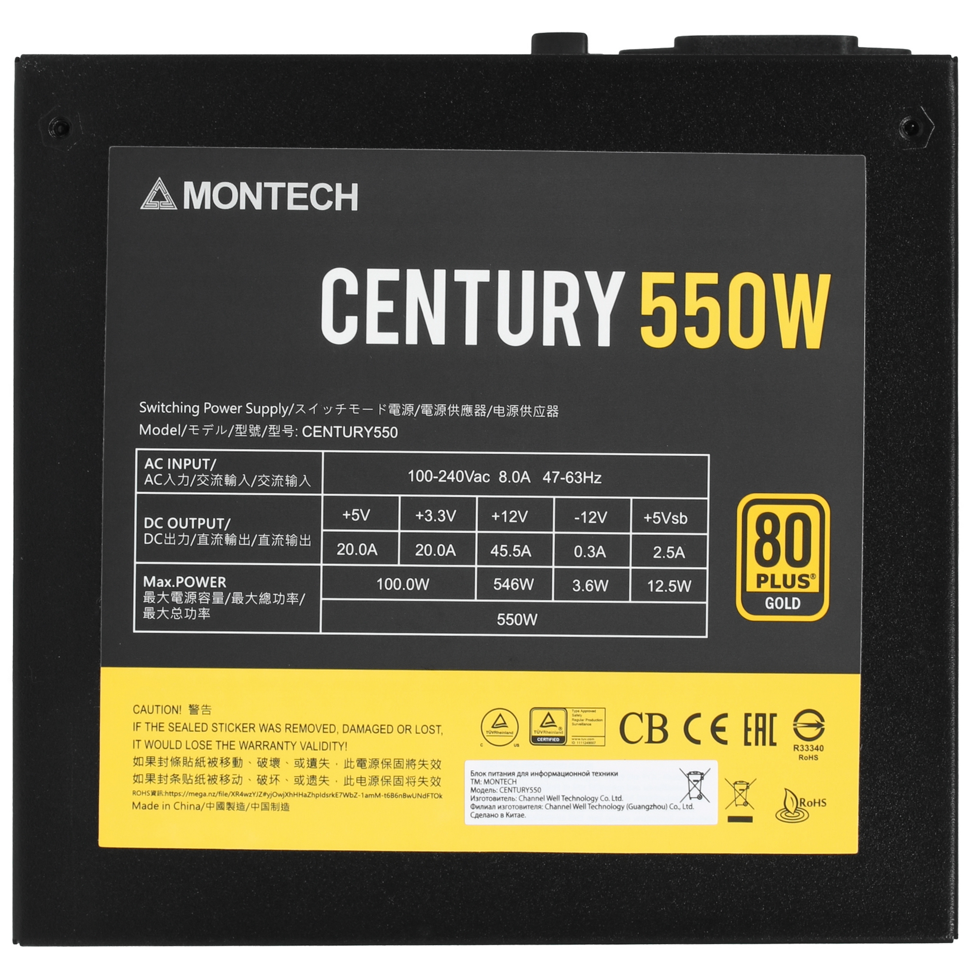 Блок питания MONTECH CENTURY 550 предназначен для мощных рабочих станций и геймерских ПК. Его форм-фактор ATX обеспечивает универсальность и стабильность работы. Устройство соответствует стандарту 80 PLUS Gold и имеет мощность 550 Вт. Блок питания оснащен разъемами питания 20+4 pin и 4+4 pin, двумя коннекторами для видеокарт 6+2 pin, восемью портами SATA и тремя разъемами Molex. Модульная конструкция облегчает подключение необходимых компонентов.