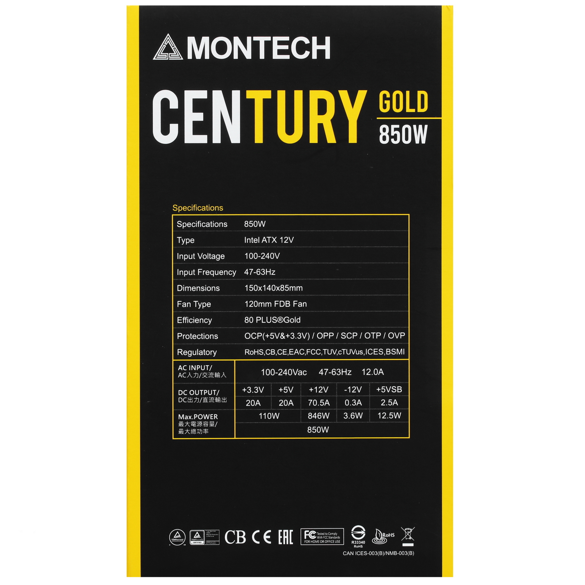 Откройте для себя игровой блок питания MONTECH CENTURY 850 – мощь 850W по стандарту 80 Plus Gold! Идеально подходит для игровых сборок и профессиональных рабочих станций. Удобство модульных отстёгивающихся кабелей (20+4pin/4+4pin, 6+2pin x6, SATA x10, Molex x3), охлаждение 120мм вентилятора и передовые технологии защиты гарантируют надежность работы вашего компьютера даже под максимальной нагрузкой. Подарите своему железному другу долгую жизнь с MONTECH CENTURY 850!