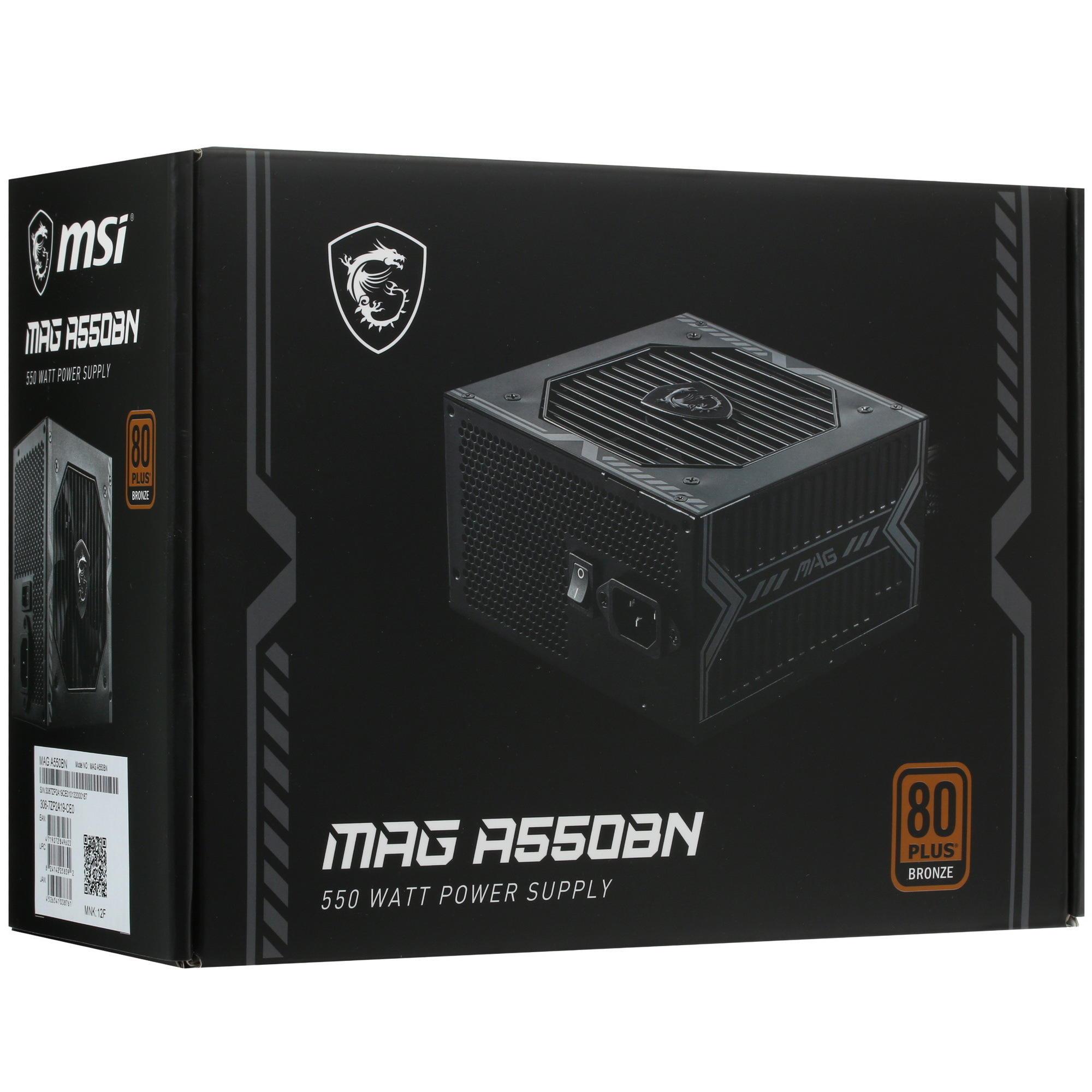 Блок питания MSI MAG A550BN [306-7ZP2A19-CE0] сертифицирован по стандарту 80 Plus Bronze, гарантируя высокий КПД при минимальном энергопотреблении. Он имеет компактный ATX-формат – всего 14x15 см – и оснащен активным вентилятором, разгоняющимся до 2200 оборотов в минуту.