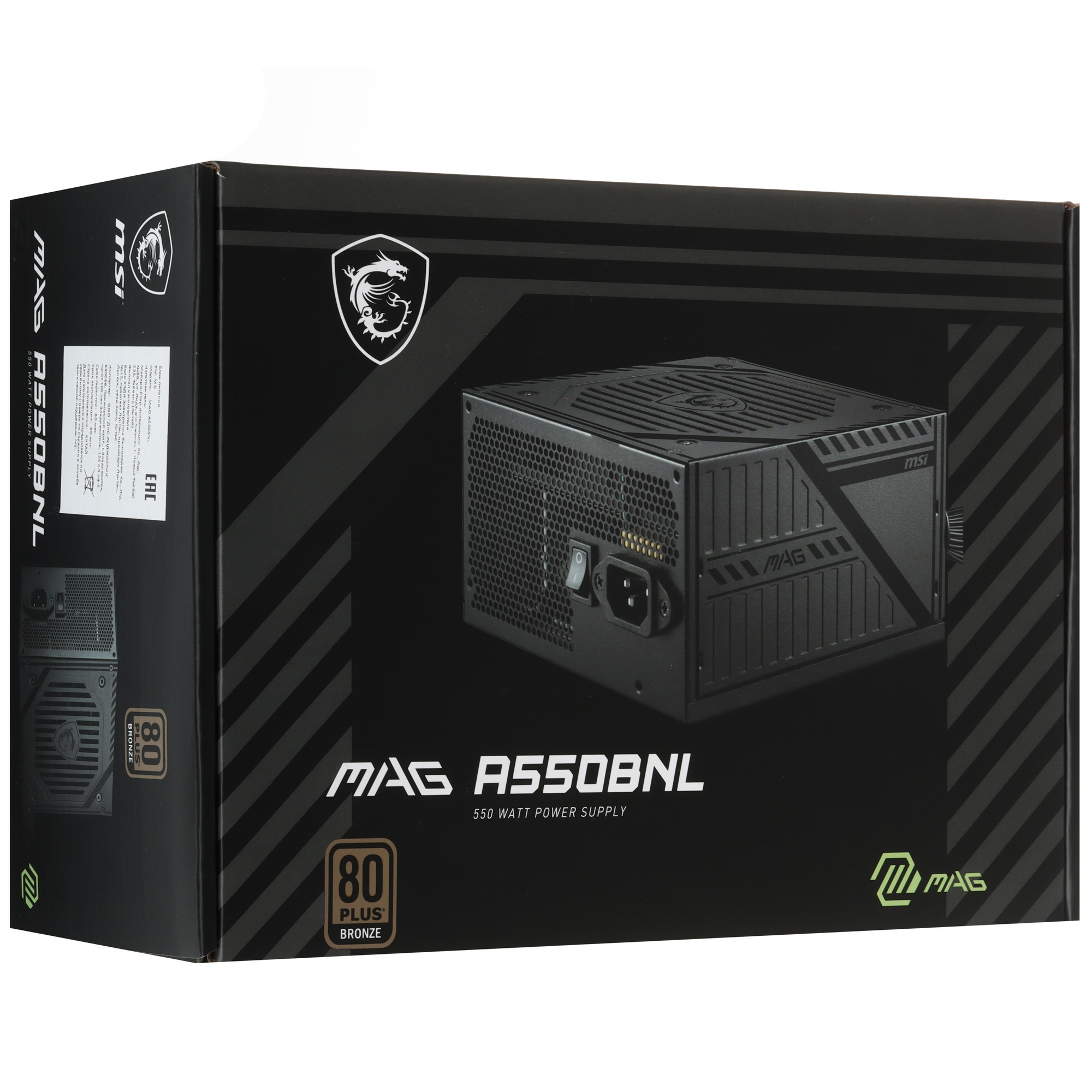 Блок питания MSI MAG A550BNL — это компактное решение в формате ATX. Его размеры (140x150x86 мм) позволяют легко установить его в небольшие корпуса, оставляя место для укладки кабелей и улучшения вентиляции. Блок питания соответствует стандарту 80 Plus Bronze, что гарантирует высокую энергоэффективность и низкое потребление электроэнергии. Мощность устройства составляет 550 Вт, что подходит как для офисных компьютеров, так и для систем с высокопроизводительными видеокартами и игровых конфигураций.