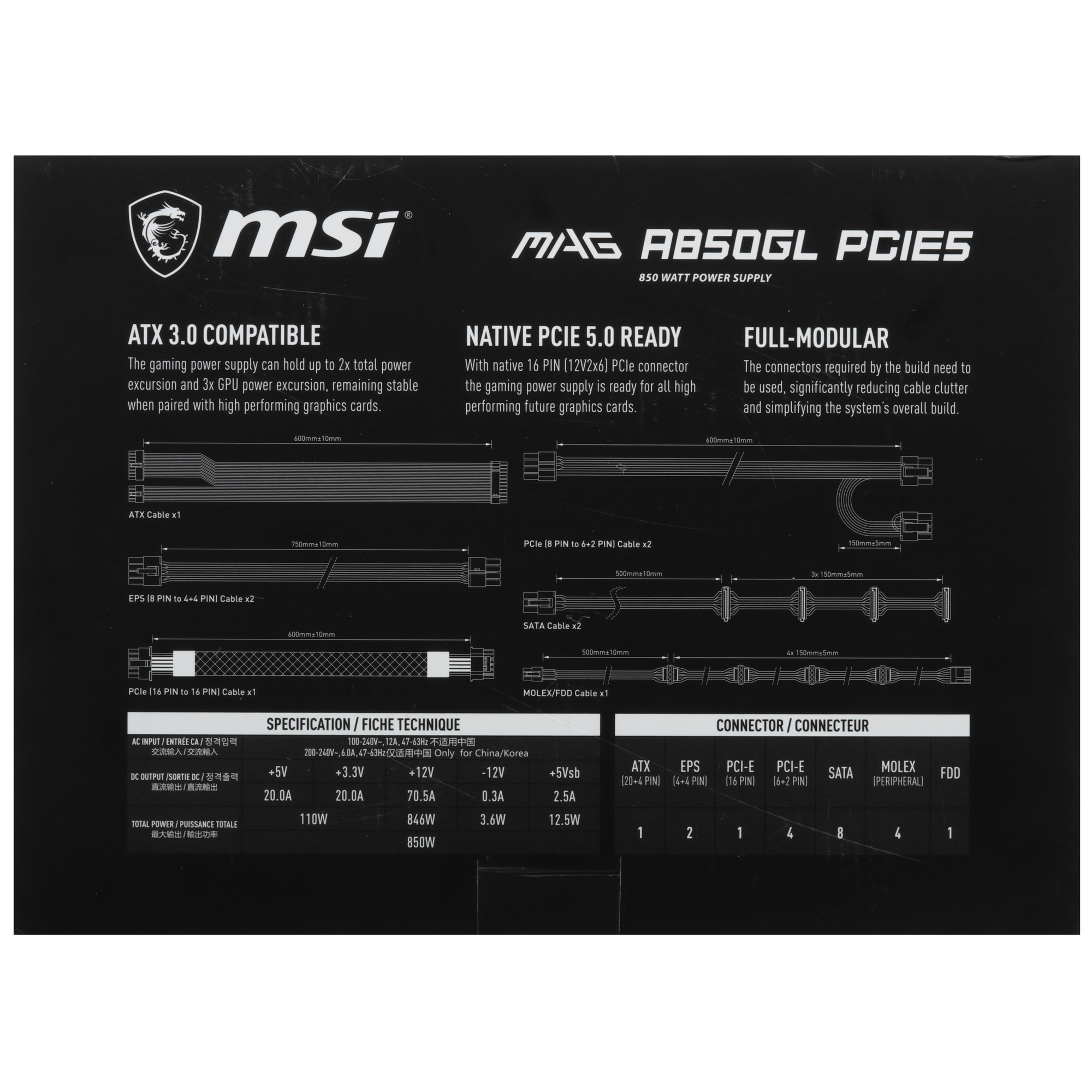 Откройте для себя новый стандарт надежности с блоком питания MSI MAG A850GL PCIE5! Мощность 850Вт удовлетворит даже самые ресурсоемкие сборки. Модульная система подключений избавляет от путаницы проводов, делая установку легкой и удобной. А встроенные технологии защиты обеспечат безопасную работу вашего ПК. Закажите сейчас и почувствуйте разницу премиум-качества!