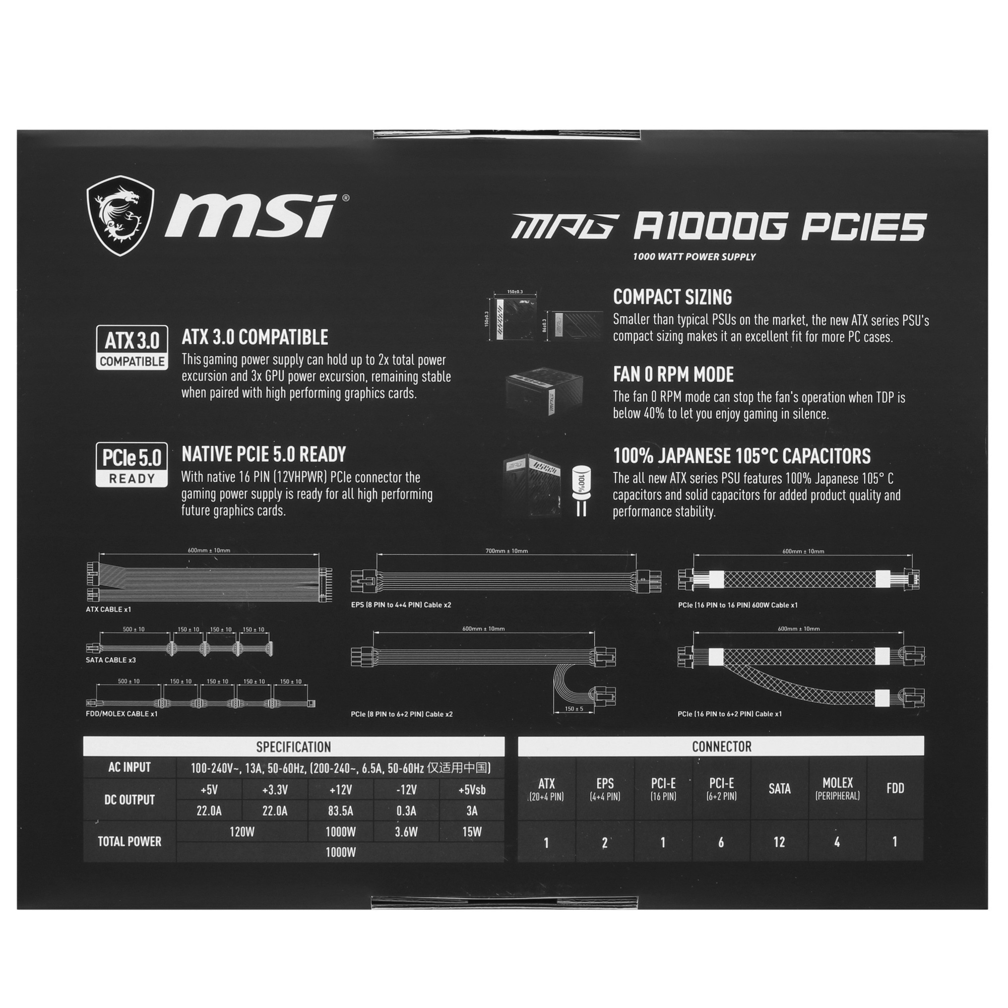 Блок питания MSI MPG A1000G PCIe 5 [306-7ZP7C11-CE0] – мощное и надежное решение для игровых систем, сочетающее высокую производительность и энергоэффективность. С мощностью 1000 Вт он идеально подходит для геймеров, обеспечивая стабильную работу даже самых требовательных игр. Сертификация 80+ Gold подтверждает его высокую производительность и длительный срок службы.