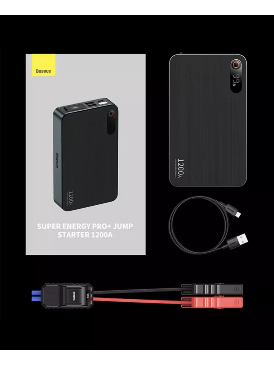 Устройство оснащено аккумулятором емкостью 12000 мАч и способно выдавать пиковый ток до 1200 А. Этого достаточно, чтобы завести автомобиль до 50 раз после полной зарядки. Baseus Super Energy Pro+ интуитивно понятен в использовании, что делает его удобным для любого автовладельца.
