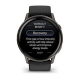 Физическая активность; Частота сердечных сокращений на запястье (постоянная, каждую секунду); Частота сердечных сокращений в состоянии покоя; Оповещения об аномальном сердечном ритме (высокий и низкий); Частота дыхания; Фитнес-возраст; Монитор энергии Body Battery™; Стресс в течение всего дня; Напоминания о релаксации; Таймер релаксационного дыхания; Медитация; Дыхательная работа; Сон; Тренер по сну; Выравнивание сна; Вариации дыхания; Обнаружение дневного сна; Гидратация (в Garmin Connect™ и дополнительном виджете Connect IQ™); Женское здоровье (в Garmin Connect™ и дополнительном виджете Connect IQ™); Снимок здоровья; Температура кожи; Ведение журнала образа жизни; Состояние здоровья
