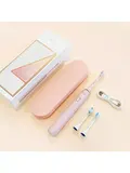 SOOCAS X3U pink получает питание от аккумулятора Li-ion, который позволяет использовать щетку в течение 25 дней при чистке два раза в день по 2 мин. Привыкнуть к щетке помогает функция привыкания. Датчик нажима обеспечивает бережную чистку: при чрезмерном нажатии срабатывает индикация. Модель использует 3 типа насадки, включенные в комплект. Для ежедневной чистки применяется насадка с щетинками средней жесткости. Отбеливающая насадка позволяет привести порядок зубы тем, кто много употребляет кофе и курит, а насадка для чувствительных зубов обеспечивает бережный уход.