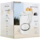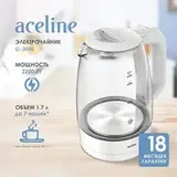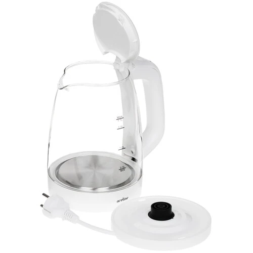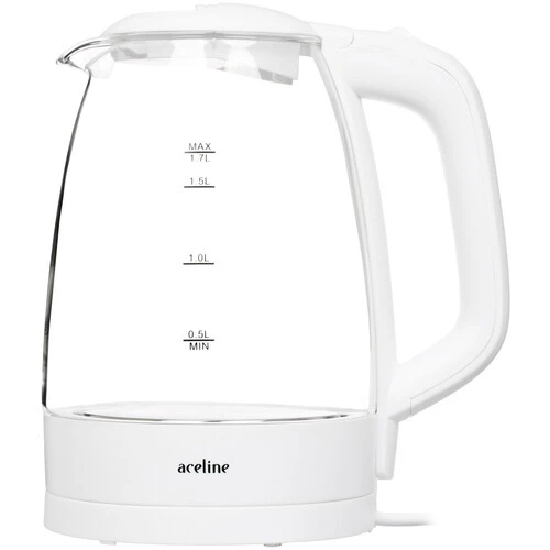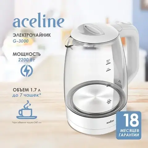 Электрочайник Aceline G-3000 станет незаменимым прибором на вашей кухне, ведь он позволяет за считанные минуты получить 1.7 л кипяченой воды, которую можно использовать для приготовления каши, горячего напитка или для обработки детских принадлежностей. Обладая мощностью 2200 Вт, устройство обеспечивает быстрый результат, поскольку нагревательный элемент обладает свойством моментально достигать нужной температуры. Корпус электрочайника Aceline G-3000 сделан из пластика, сочетающегося с термостойким стеклом. Использование прозрачного стекла в составе чайника позволяет насладиться красотой бурления воды: этому также способствует и встроенная подсветка корпуса. Конструкция чайника предусматривает наличие откидной крышки, обеспечивающей удобство наполнения прибора водой. Благодаря узкому носику вам будет легко набирать воду в колбу. На корпус нанесена шкала, позволяющая отследить уровень воды в чайнике. При отсутствии воды внутри срабатывает автоматическое отключение устройства.