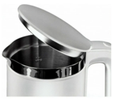 Модель оснащена дисплеем, шкалой уровня воды и удобной поворотной подставкой. Блокировка включения с пустой емкостью способствует увеличению срока службы чайника.