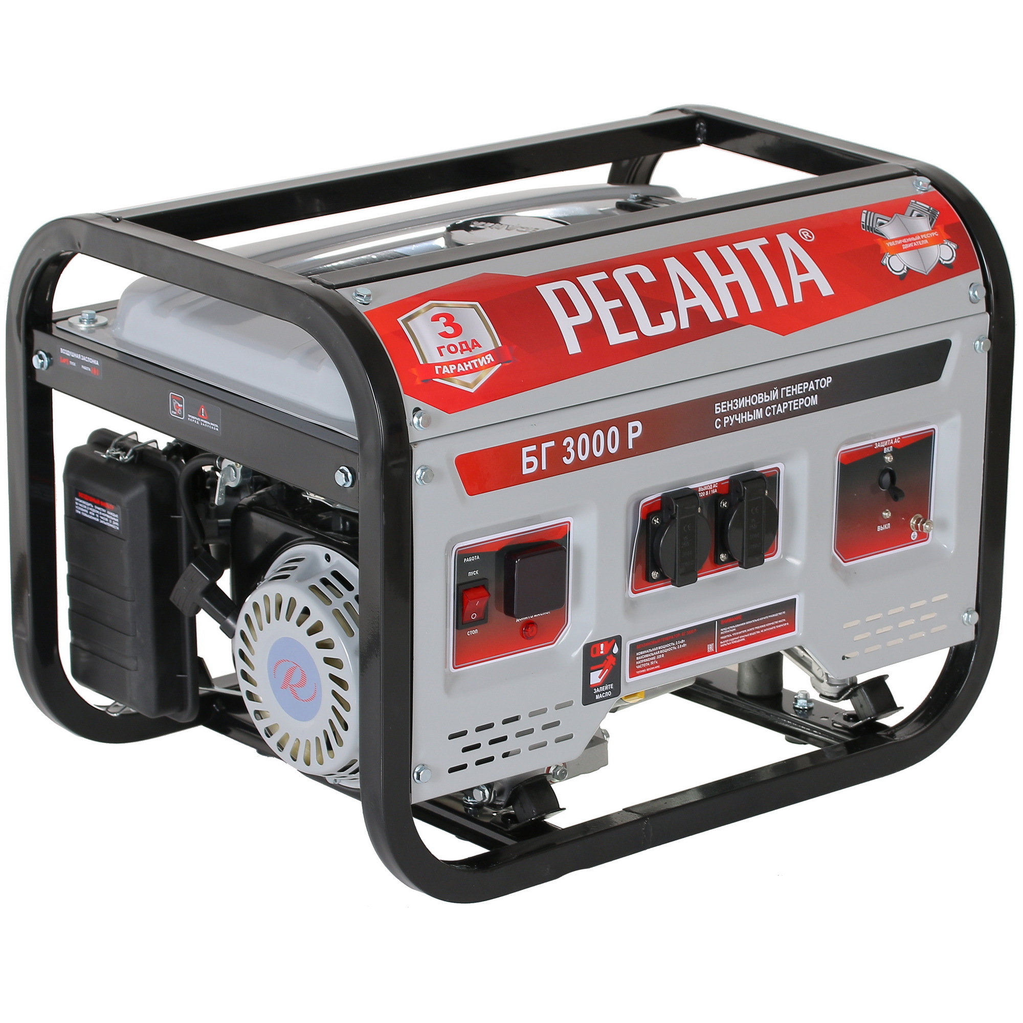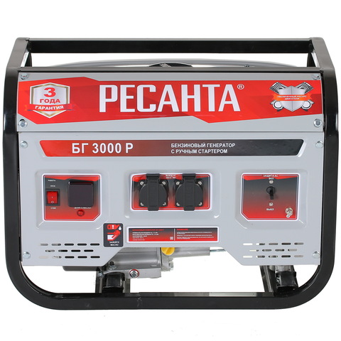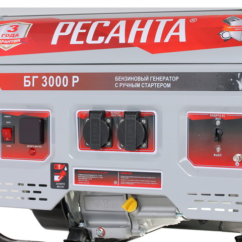 Генератор Ресанта БГ 3000 Р обеспечивает напряжение 220 В и имеет две розетки 220 В/16 А на корпусе. Модель оснащена системой встроенной защиты от перегрузки, короткого замыкания и недостаточного уровня масла. Регулировка оборотов позволяет экономить ресурс и топливо. Усиленная рама генератора обеспечивает его надежность, однако во время работы устройство издает шум на уровне 66 дБ.