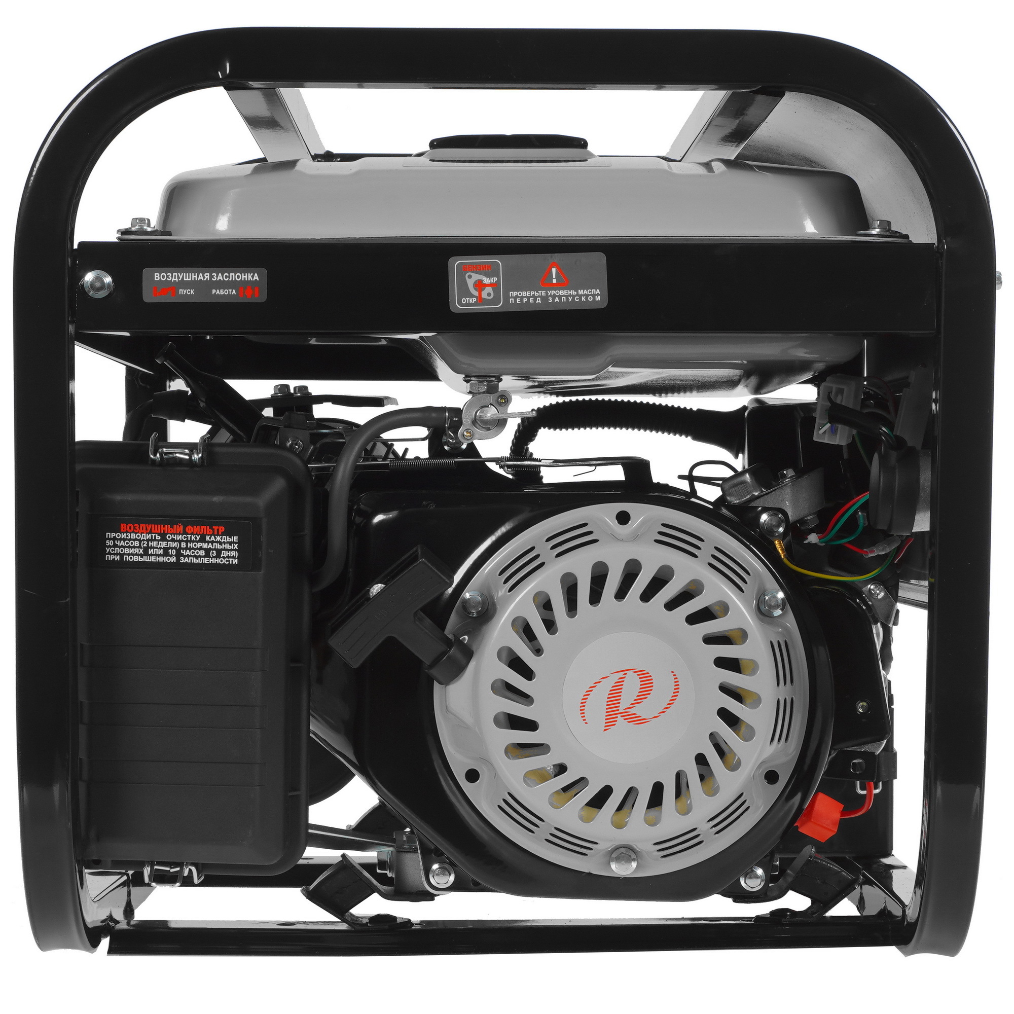 Регулировка оборотов позволяет экономить топливо и ресурс генератора. Топливный бак объемом 15 литров обеспечивает длительное время работы. Керамическое напыление на поршне предотвращает появление нагара при использовании некачественного топлива и продлевает срок службы устройства.
