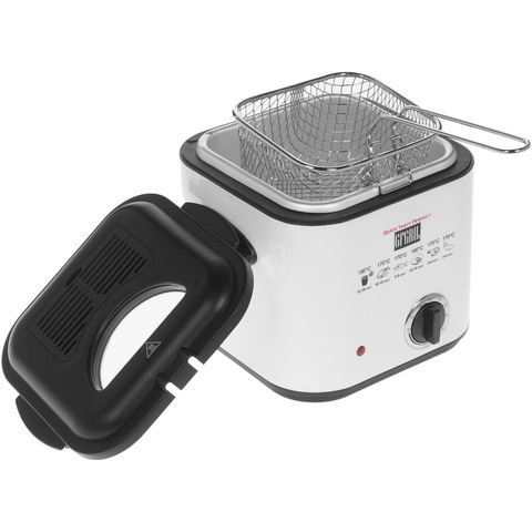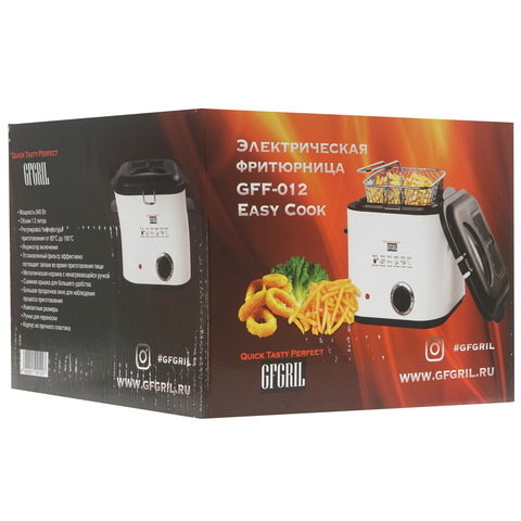 Фритюрница GFF-012 Easy Cook дополнена прорезиненными ножками в основании, которые способствуют обеспечению ее повышенной устойчивости на любой поверхности. После использования этой домашней помощницы вам не придется проветривать помещение от неприятных запахов, поскольку в ней установлен соответствующий фильтр. Большое смотровое окно GFF-012 Easy Cook позволит контролировать ход кулинарного процесса. Поворотный переключатель на корпусе придется как нельзя кстати для плавной регулировки температуры. Выполненный из нержавеющей стали и пластика корпус не подвержен нагреву в процессе функционирования фритюрницы, что позволит избежать появления ожогов на ваших руках.