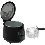 Фритюрница Tefal FF230831 — стильное решение для вашего дома! Черный корпус с прорезиненными ножками обеспечивает устойчивость и элегантность. Мощности 1000 Вт достаточно, чтобы приготовить до 0,6 кг картофеля всего за пару минут! Удобная регулировка температуры (от 150°C до 190°C), большая корзина и понятные пиктограммы рецептов делают процесс готовки простым и приятным. Прибор безопасен благодаря термоизоляции стенок. А еще его легко мыть!