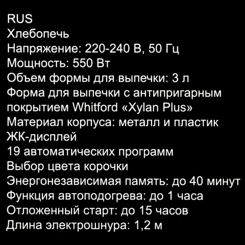 веса выпечки, времени приготовления, выбранной программы, режима отсрочки старта, цвета корочки, этапов программы