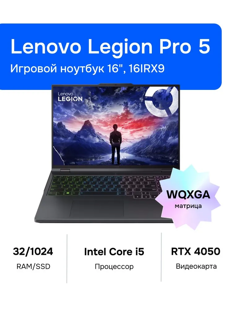 Описание - Игровой ноутбук Lenovo Legion Pro 5 16IRX9 16" i5-14500HX, RAM 32 ГБ, SSD 1024 ГБ, RTX 4050, Без ОС