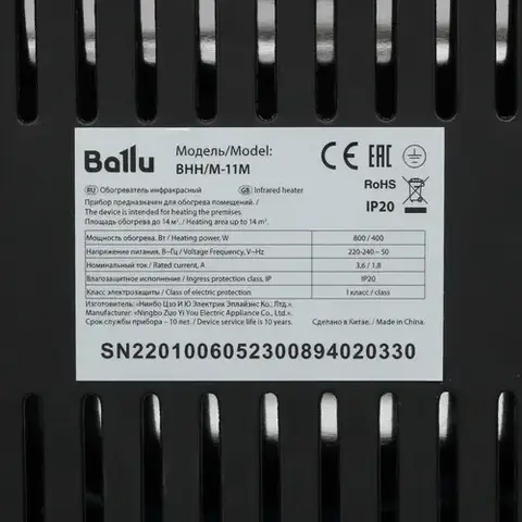 Инфракрасный обогреватель Ballu BHH/M-11M эффективно отдает тепло, не высушивая воздух, что обеспечивает комфортные условия. Модель имеет удобную подставку и устанавливается на пол. Для настройки предусмотрены кнопки на нижней части корпуса.