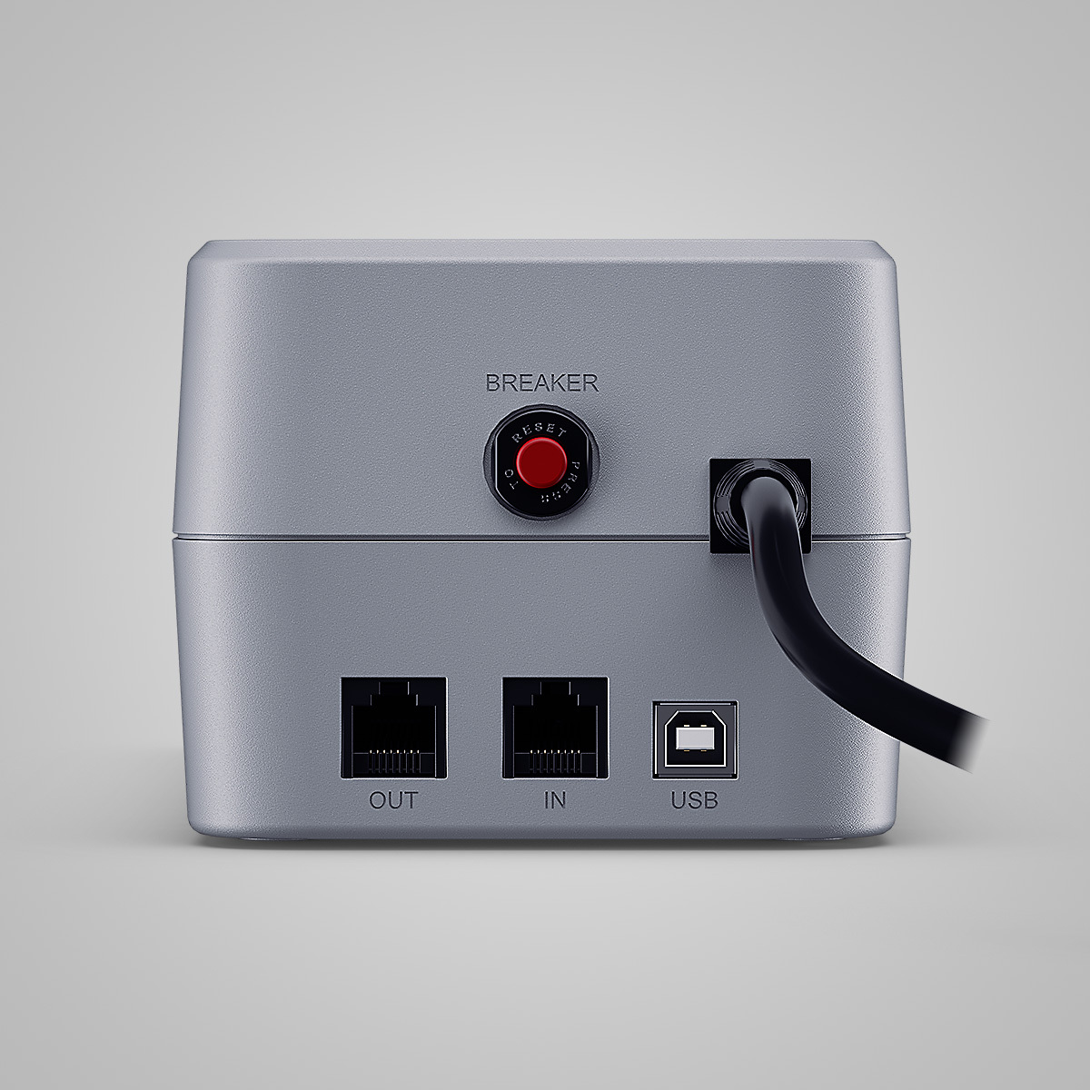 Модель оборудована шестью розетками стандарта евро для подключения бытовой и офисной техники, а также разъемами RJ-11 и RJ-45 и портом USB. При использовании батареи ИБП может обеспечить до 35 минут резервного питания в случае отключения энергии.