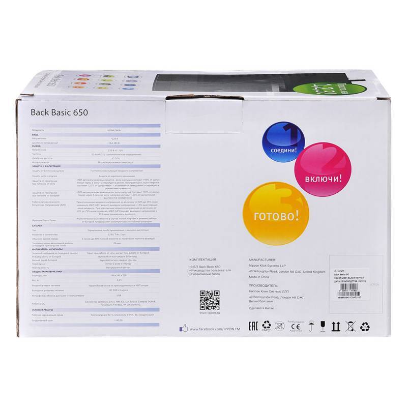 Линейно-интерактивный ИБП Back Basic 650 стал самым популярным в линейке Ippon благодаря удачному сочетанию стоимости и функциональных возможностей. Этот источник бесперебойного питания оснащён тремя розетками стандарта IEC 320 C13 и имеет выходную мощность 360 Вт (650 ВА), что вполне достаточно для обеспечения работы стандартного офисного или домашнего рабочего места.