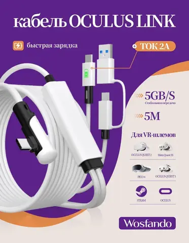 Держите связь с ПК и наслаждайтесь плавной игрой благодаря кабелю USB 3.2 длиной 5 м! Поддержка передачи данных высокой скорости и встроенный зарядный порт делают этот аксессуар незаменимым при использовании Oculus Quest 1/2/3 и Pico 4. Создайте идеальные условия для погружения в виртуальную реальность вместе с Wosfando!