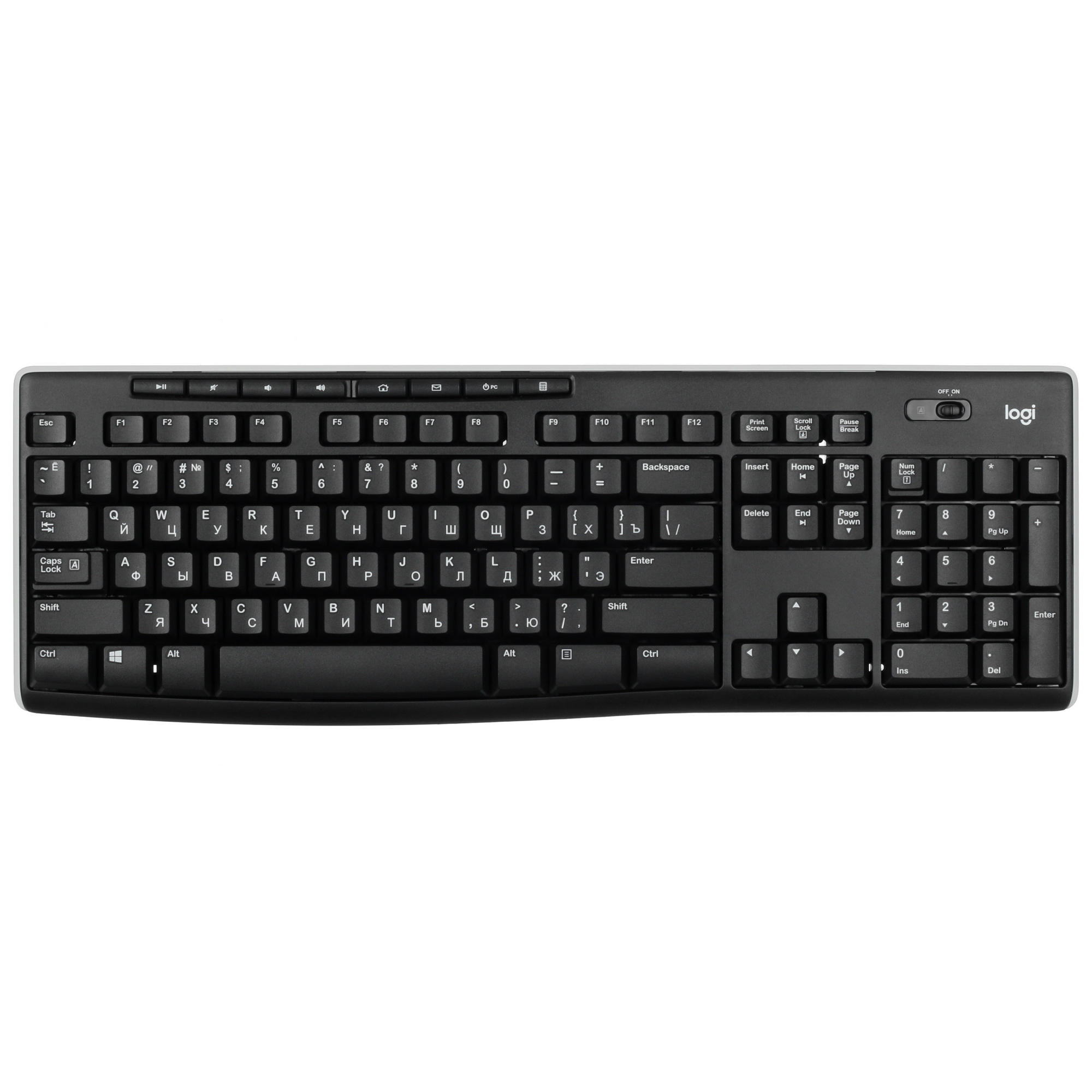 Беспроводная клавиатура Logitech K270 [920-003058] выполнена из пластика и обладает влагозащитой, что предотвращает поломку при случайном пролитии жидкости. В ней предусмотрено 112 кнопок, включая 8 дополнительных, которые обеспечивают доступ к офисным приложениям, управление мультимедиа и перевод компьютера в спящий режим.