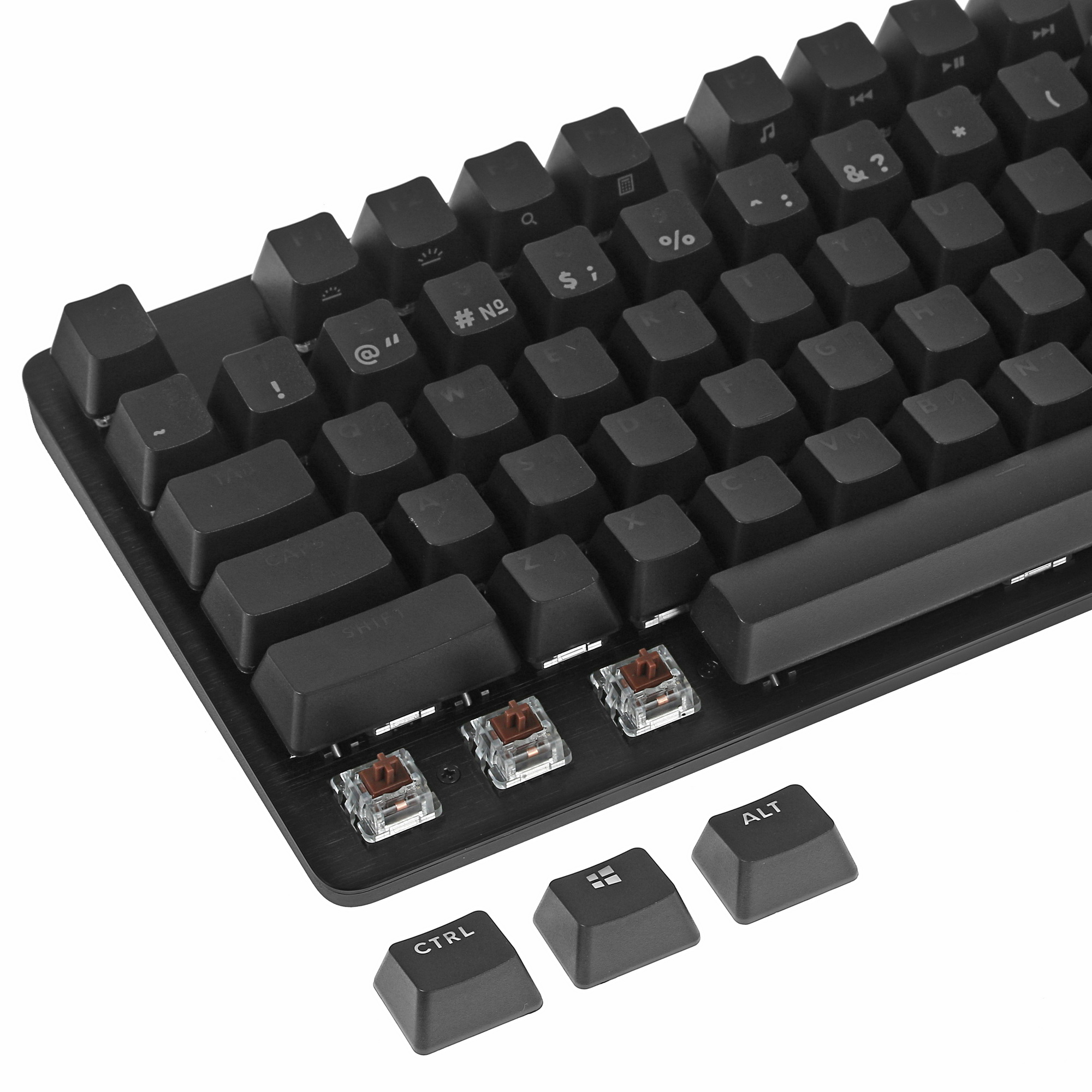 Проводная клавиатура Logitech G413 TKL SE (модель 920-010447) выполнена в компактном форм-факторе TKL и обеспечивает высокую производительность для игр. Устройство оснащено 87 клавишами с механическими переключателями Kailh Brown, которые отличаются приятным тактильным откликом. Колпачки клавиш изготовлены из прочного материала PBT, что гарантирует их долговечность. Для комфортной игры в условиях низкой освещённости предусмотрена белая светодиодная подсветка. Корпус клавиатуры, выполненный из металла и пластика, устойчив к механическим повреждениям. Соединение с компьютером осуществляется через проводной интерфейс USB.