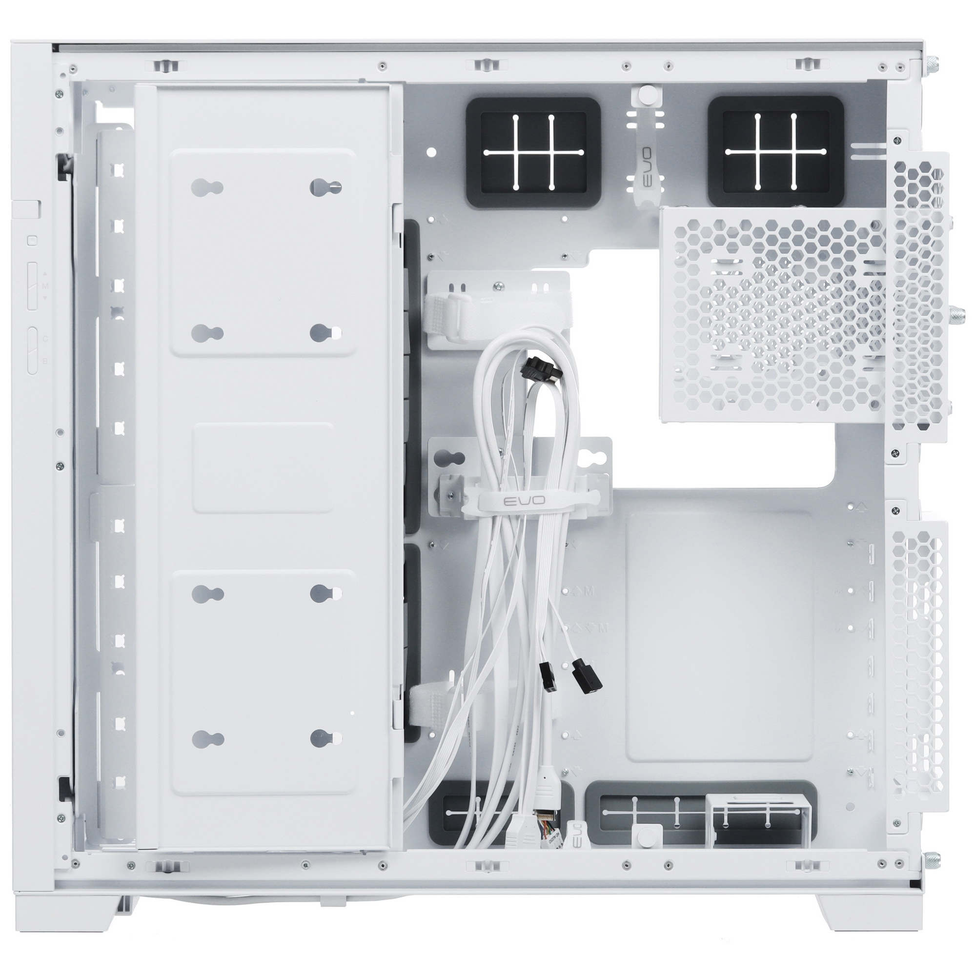 В LIAN LI O11 Dynamic EVO RGB предусмотрен слот для видеокарты длиной до 455,7 мм. В отсеках 2.5" и 3.5" можно разместить до 8 жестких дисков и до 4 твердотельных накопителей, что значительно увеличивает объем хранения данных. Поддерживается установка различных типов вентиляторов: тыловых, боковых, верхних и нижних. Также возможно использование системы жидкостного охлаждения. Панель с USB-разъемами и кнопкой включения находится в нижней части корпуса и может быть перемещена в другое место. Пылевой фильтр защищает внутреннее пространство от загрязнений.
