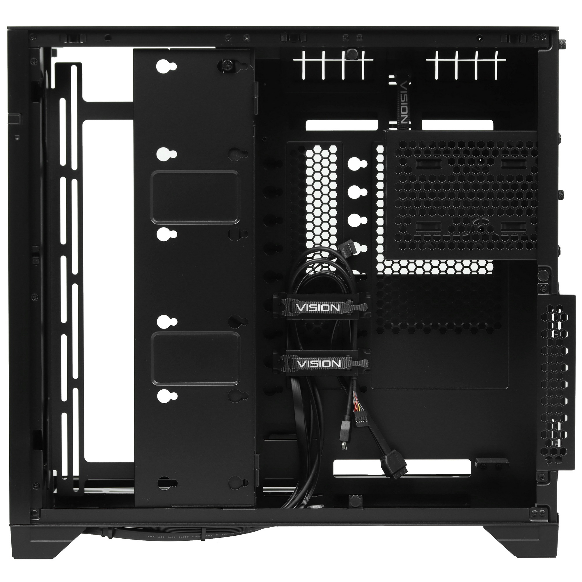 Корпус LIAN LI O11 Vision изготовлен из черного алюминия толщиной 1 мм и включает в себя прозрачную боковую панель из закаленного стекла, позволяющую легко наблюдать за установленными компонентами. Для эффективного охлаждения высоконагруженных компонентов можно использовать вентиляторы или систему жидкостного охлаждения. В этот корпус можно установить видеокарту длиной до 455 мм, блок питания ATX размером до 220 мм, процессорный кулер высотой до 167 мм и материнскую плату форматов E-ATX, Micro-ATX, Mini-ITX или Standard-ATX.