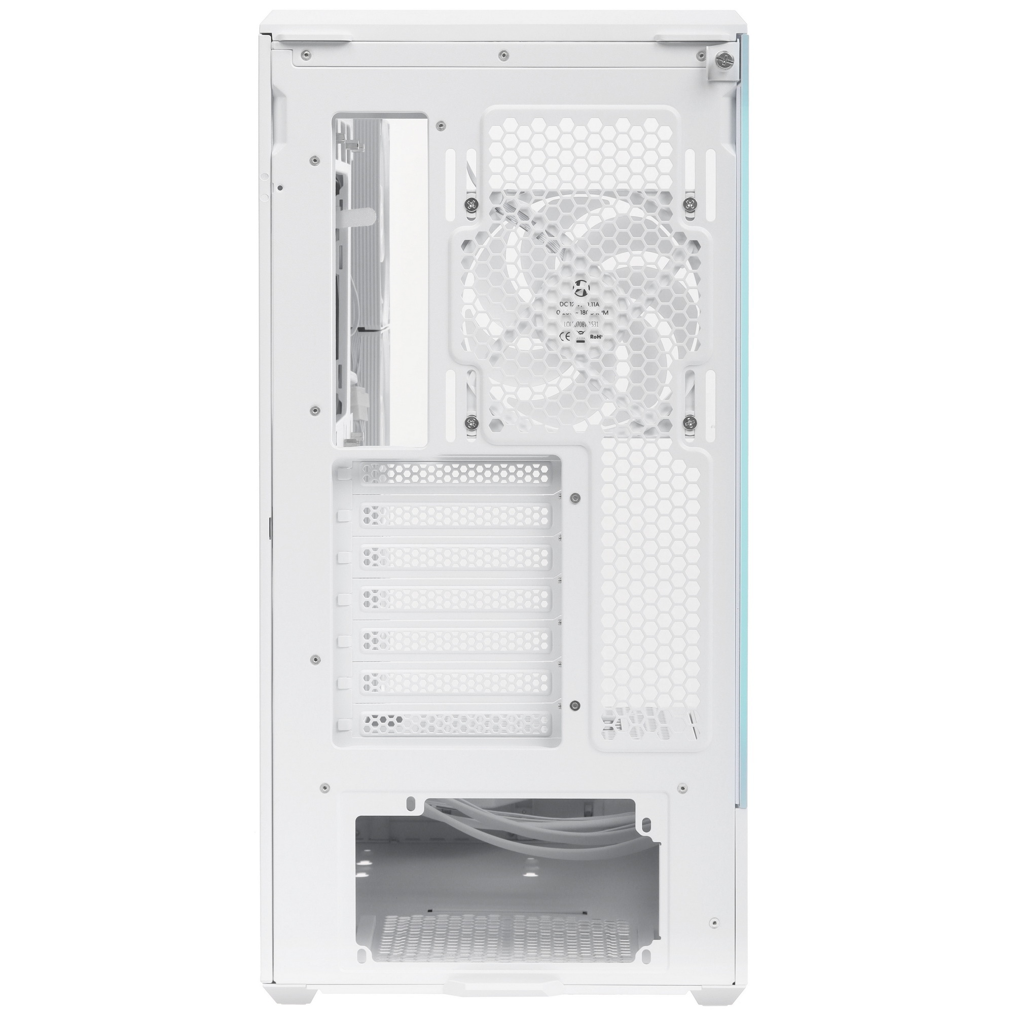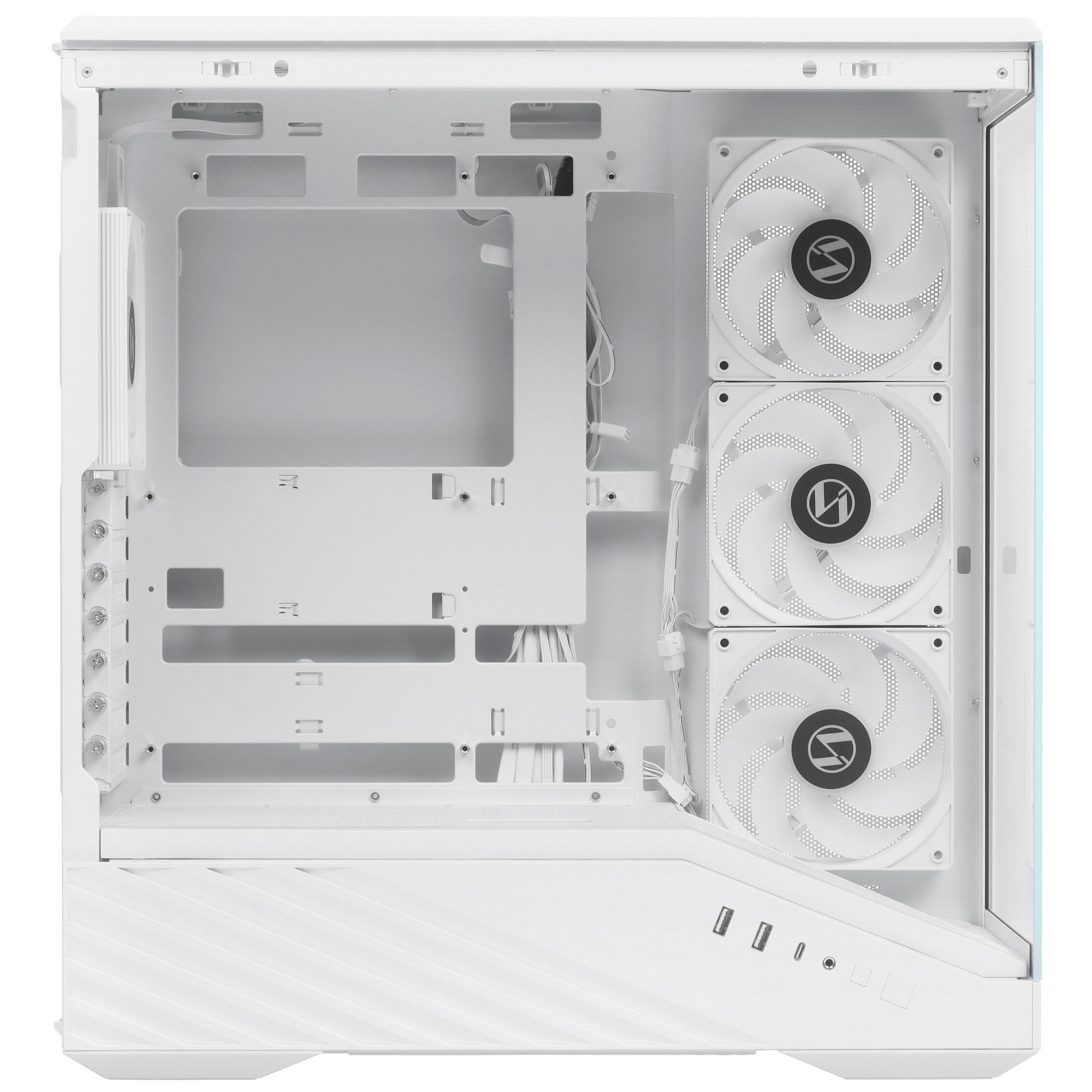 Корпус LIAN LI V100 идеально подходит для создания игрового ПК, совместимого с компонентами типоразмера Mid-Tower. Его дизайн в виде аквариума с прозрачными закаленными стеклянными панелями обеспечивает панорамный обзор внутренних компонентов. В корпусе предусмотрены зазоры для прокладки кабелей за задней стенкой, а также специальный вырез для аккуратного размещения кулера. Встроенный пылевой фильтр эффективно снижает уровень загрязнений, попадающих внутрь. Корпус также оснащен программируемой ARGB-подсветкой вентиляторов, что добавляет ему стильный и современный вид.