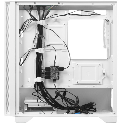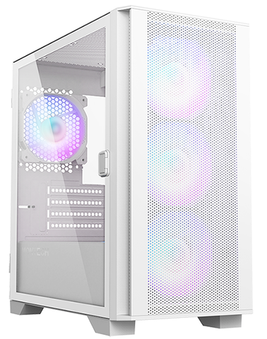 Корпус MONTECH AIR 100 ARGB в белом цвете выделяется среди других моделей своим ультраминималистичным дизайном, благодаря сетчатой текстуре лицевой панели. Это, а также предустановленные вентиляторы, обеспечивает эффективное охлаждение компьютера. Вентиляторы оснащены ARGB-подсветкой, создающей впечатляющее световое шоу. Боковые панели корпуса выполнены из закаленного стекла, а кабели внутри проходят вдоль задней стенки. Пылевой фильтр помогает поддерживать чистоту и порядок внутри корпуса.