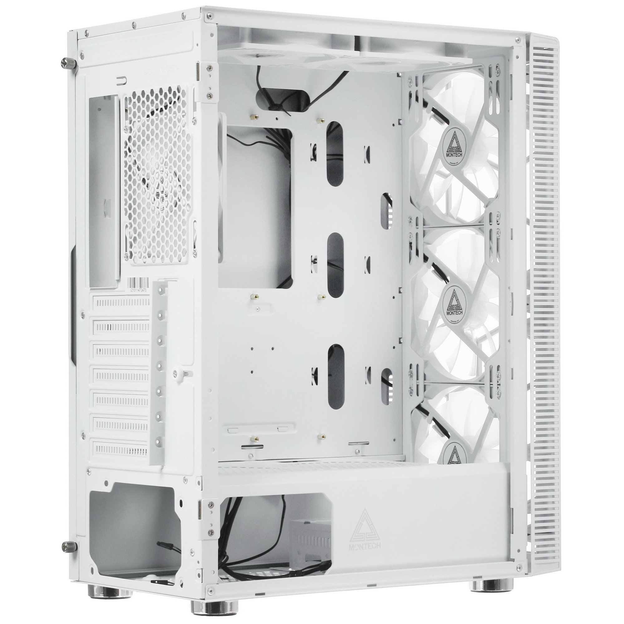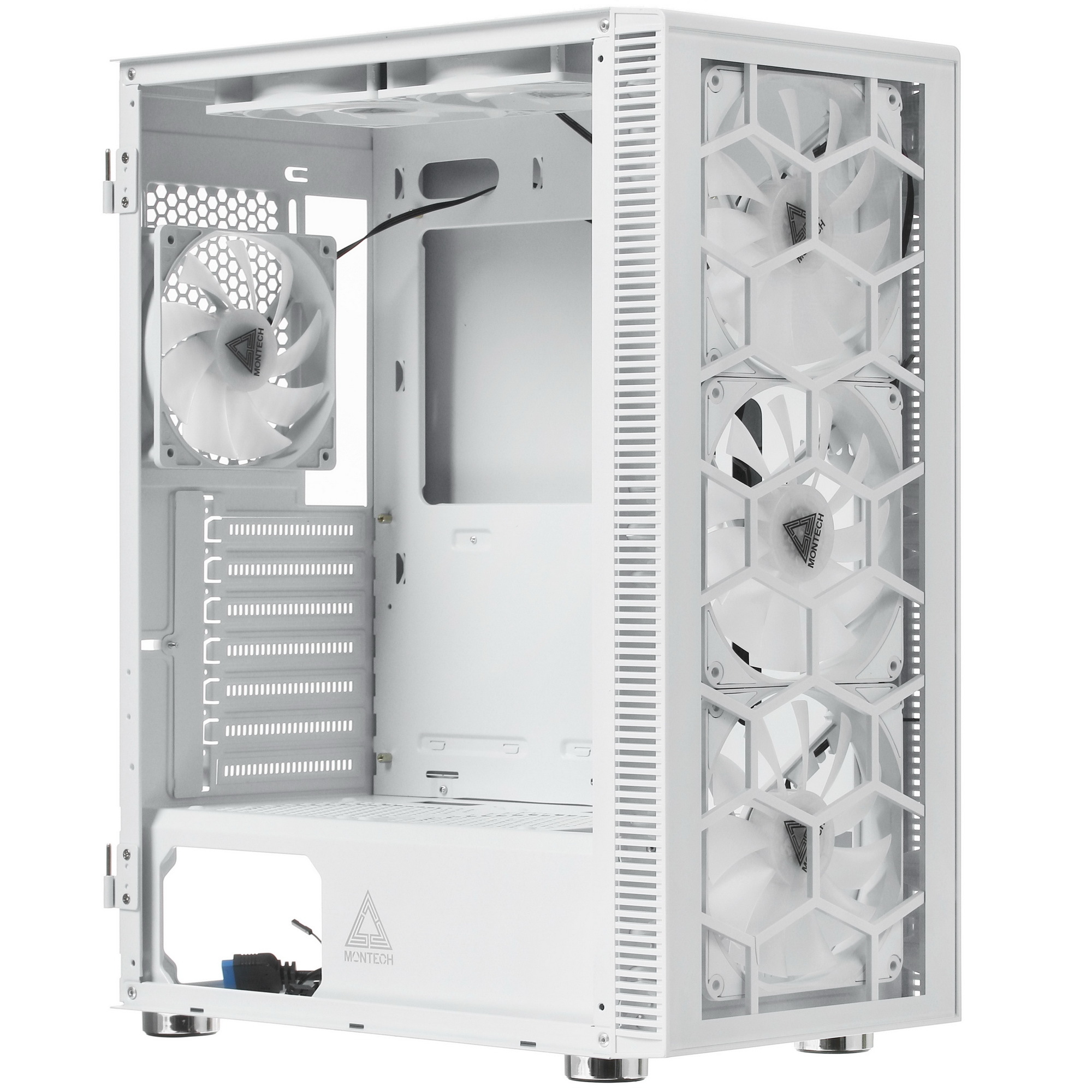 Для эффективного охлаждения внутренних компонентов корпус MONTECH X3 GLASS оснащен шестью вентиляторами с многоцветной FRGB-подсветкой. Боковые панели легко открываются, предоставляя удобный доступ к внутренним компонентам компьютера.