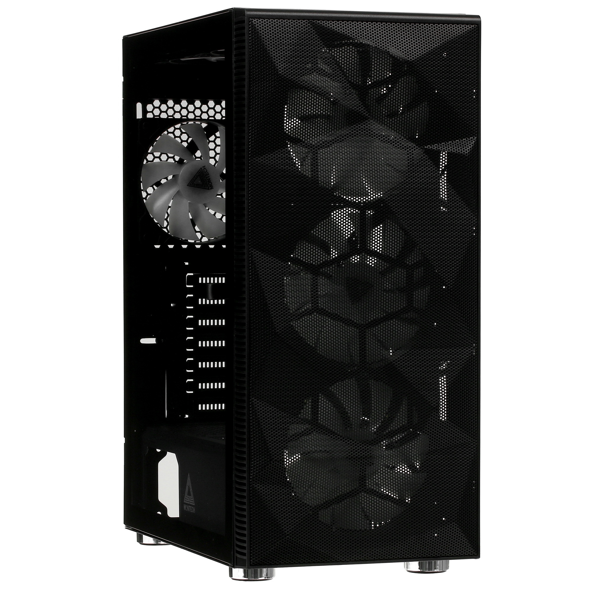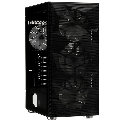 Корпус MONTECH X3 MESH в типоразмере Mid-Tower представлен в классическом черном цвете с эффектной многоцветной подсветкой, что придает ему современный игровой вид. Прочность корпуса обеспечивают материалы высокого качества: пластик, сталь и стекло.