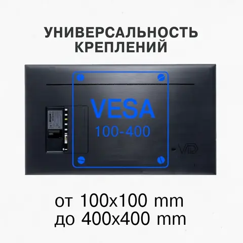 Стандарт крепления VESA*: 100x100 мм, 200x200 мм, 300x300 мм, 300x400 мм, 400x400 мм, 100x200 мм, 200x100 мм, 200x300 мм, 200x400 мм, 300x100 мм, 300x200 мм.