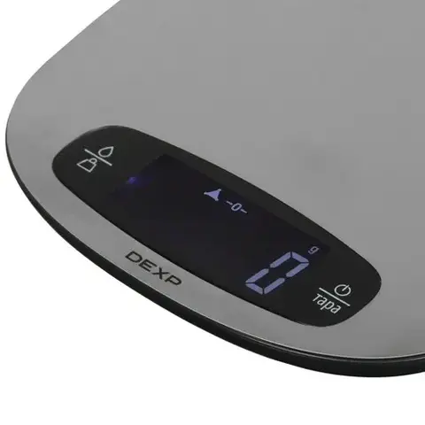 Кухонные весы DEXP KS-50 с компактным овальным дизайном и большим отверстием можно повесить прямо на стену недалеко от стола. Платформа из нержавеющей стали легко очищается от пыли и остатков пищи. Все данные о весе продуктов удобно отражаются на дисплее. Устройство DEXP KS-50 выдерживает нагрузку в 10 кг, оповещает о перегрузке, выбранной единице измерения и уровне заряда. Весы работают от двух батареек «мизинчиков», идущих в комплекте. С их помощью вы определите вес продуктов с точностью до 1 г, сможете измерять объем жидкости и использовать тарокомпенсацию.