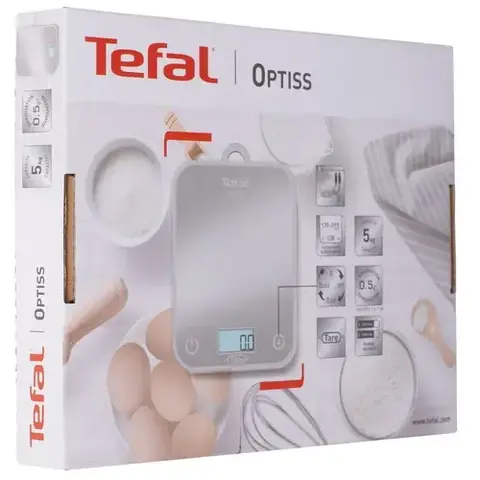 Серые электронные кухонные весы Tefal Optiss BC50U4V0 оснащены плоской стеклянной платформой для устойчивости установленной сверху посуды. Предела взвешивания 5 кг хватает для работы с крупными продуктами, замешивания теста в чаше и выполнения подобных бытовых задач. При перегрузке на дисплее появляется соответствующий индикатор. Устройство с точностью 0.5 г помогает строго следовать рецепту: отмерять нужное количество соли, сахара и других ингредиентов вплоть до щепотки. Tefal Optiss BC50U4V0 оснащены функцией тарокомпенсации для обнуления веса посуды перед добавлением в нее продуктов. Вы можете использовать разные единицы измерения для твердых ингредиентов и жидкостей. Весы с автоотключением работают от двух батареек «мизинчиков». На дисплее есть специальный индикатор для контроля за оставшимся уровнем заряда. Отверстие сзади на корпусе позволяет вешать устройство на стену рядом с кухонным столом.