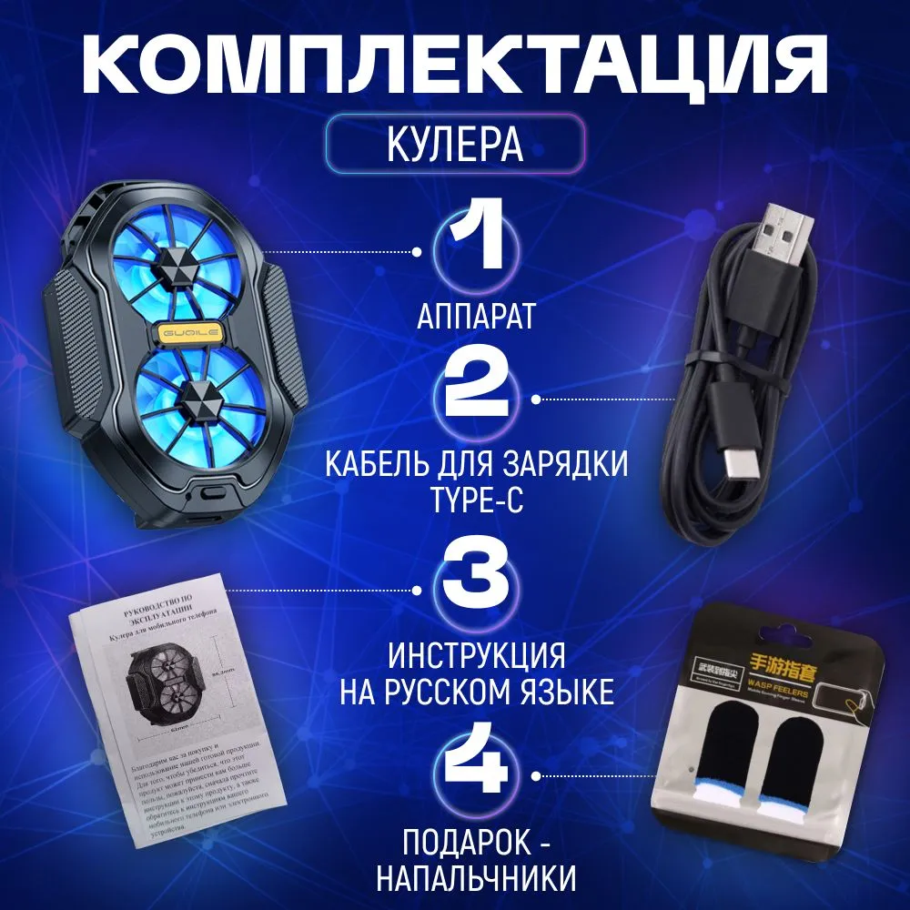 кулер для телефона, USB, инструкция, напальчник 2 шт ( в подарок)