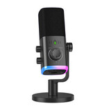 Fifine AM9 — это проводной динамический микрофон с кардиоидной направленностью. Он оснащен разъемом для наушников, функцией отключения звука и яркой RGB-подсветкой.