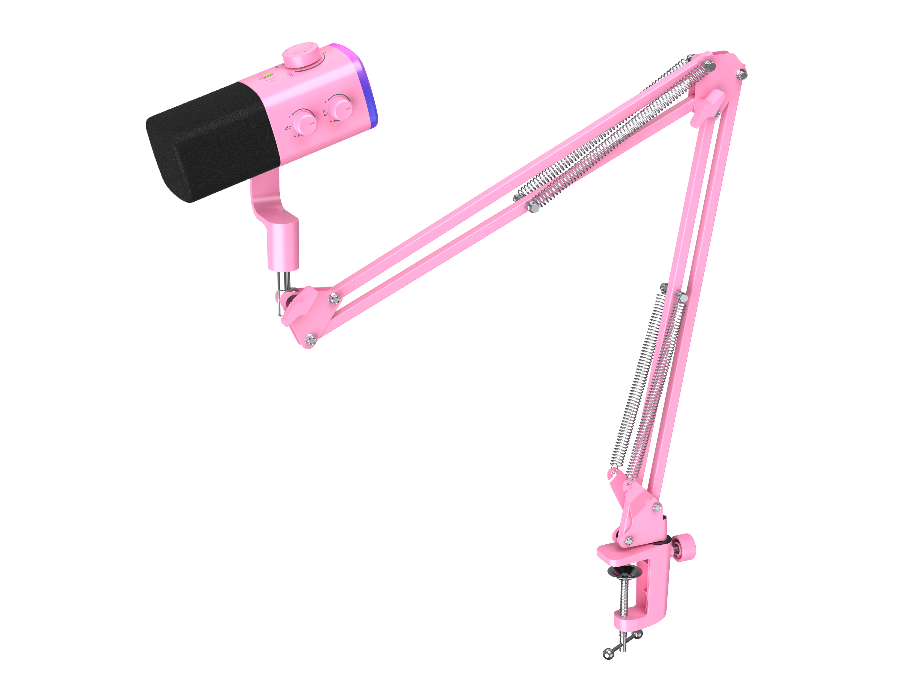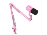 Fifine AM9T — это набор, включающий проводной динамический микрофон кардиоидного типа с разъемом для наушников, функцией выключения звука и RGB-подсветкой, а также пантограф.